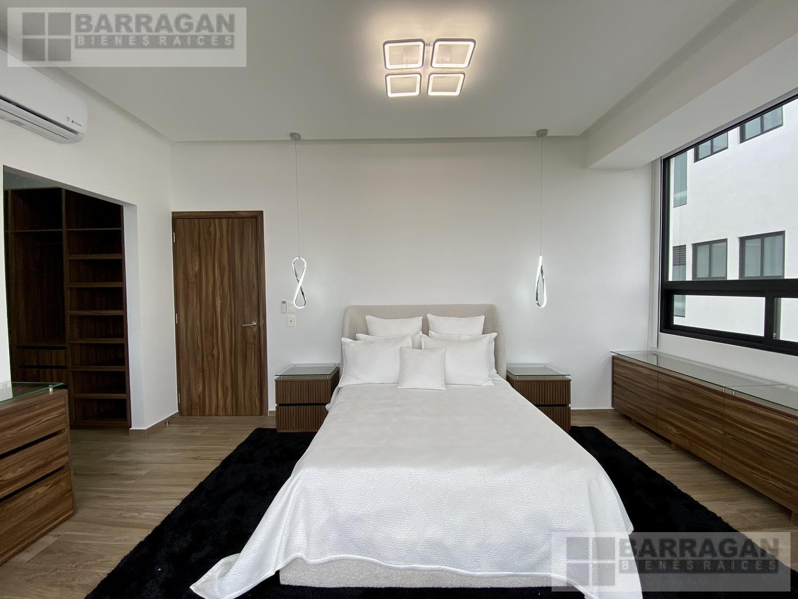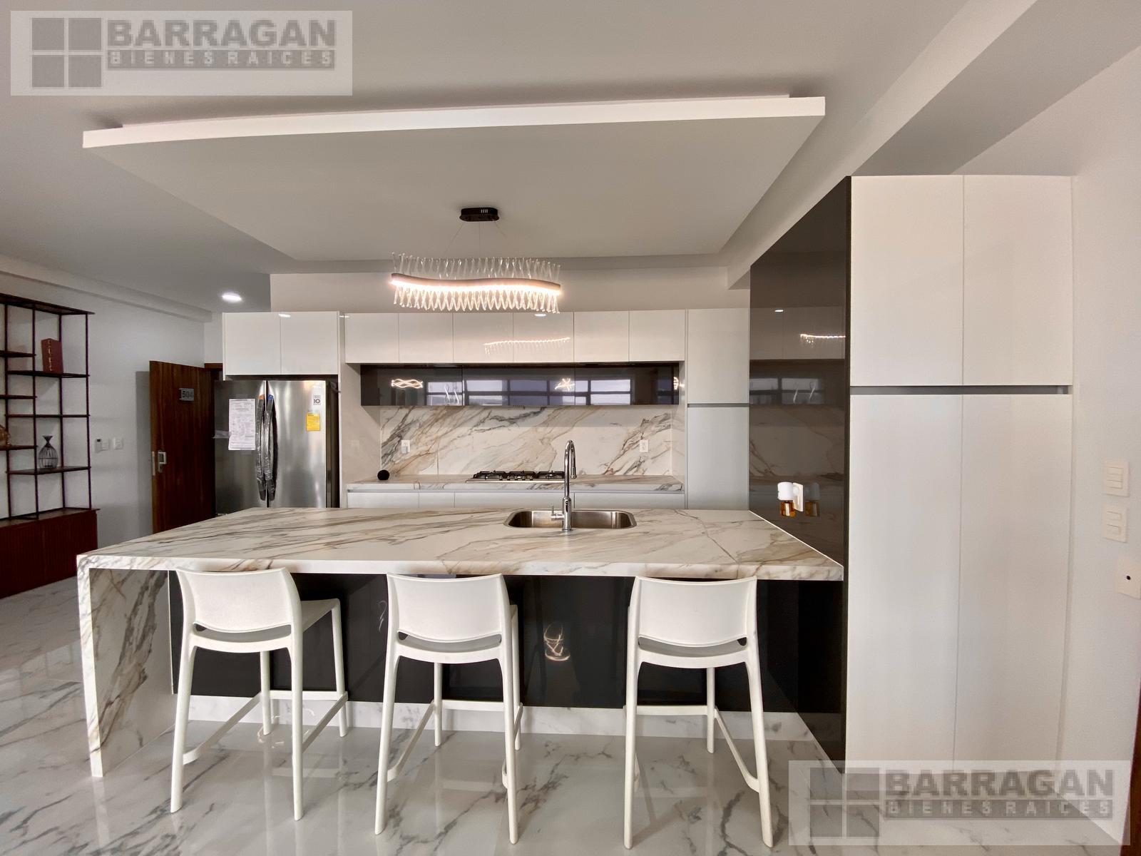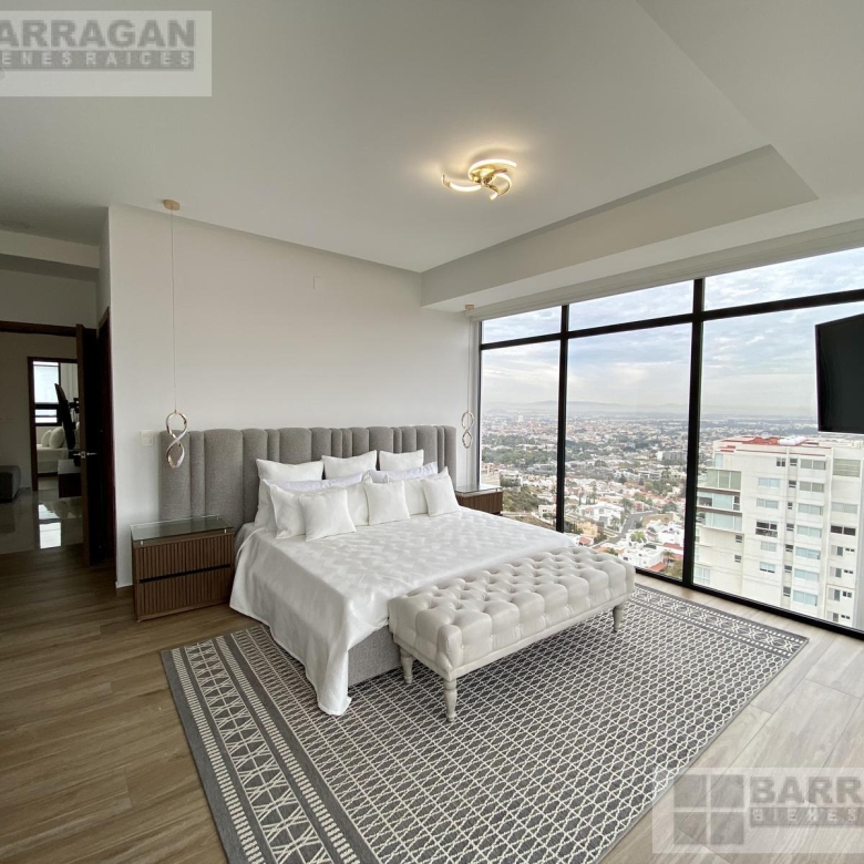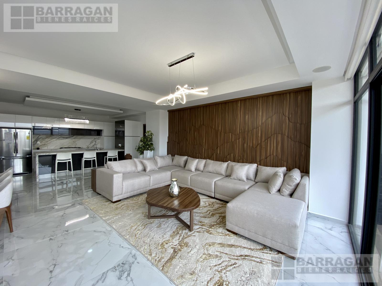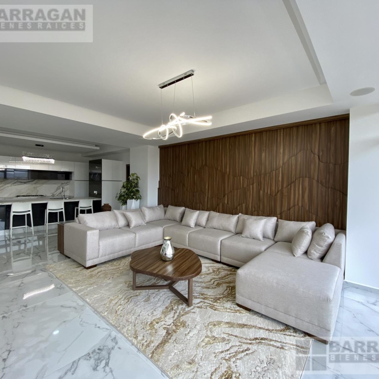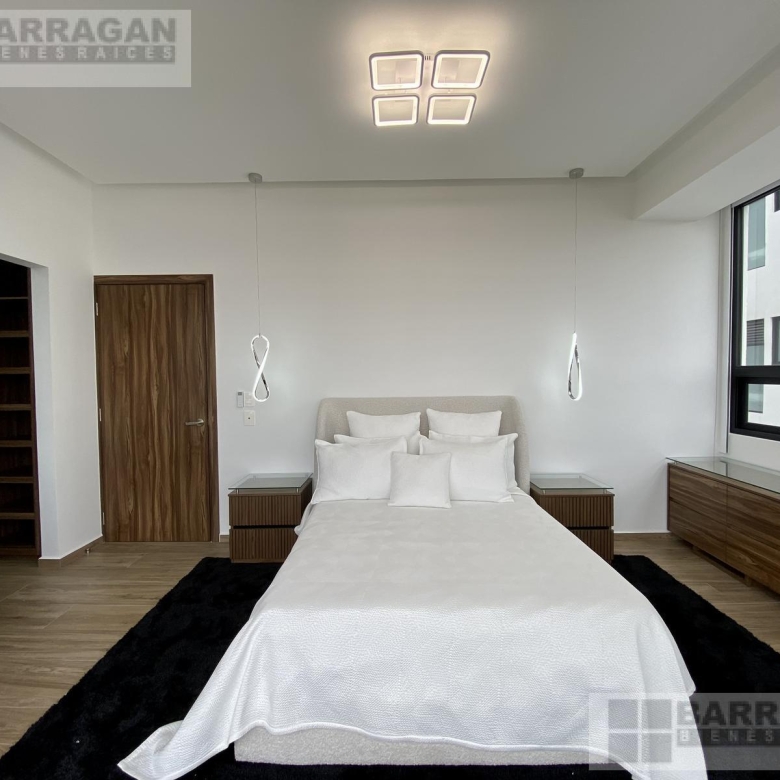 Estrena este departamento amueblado de 280 mts2 con acabados europeos, sistema inteligente, cocina abierta y equipada con estufa, campana, microondas y horno. La estancia- sala comedor con área de bar y terraza. Encontramos la sala de TV que comunica con las habitaciones, la habitación principal tiene mini split, doble vestidor y baño y las dos habitaciones secundarias cada una con su closet y baño. El departamento cuenta con bodega, 3 estacionamientos techados, cuarto de servicio y más de 23 amenidades como alberca, gimnasio, sala de cine, spa, salón de usos múltiples.