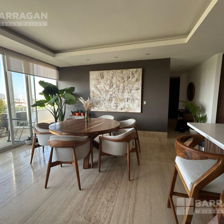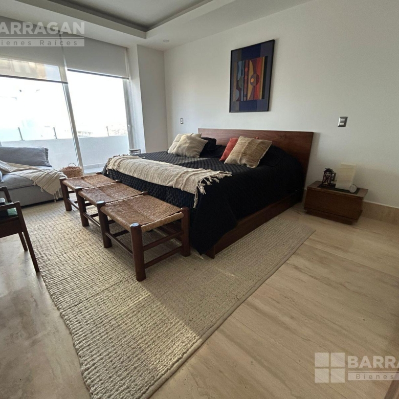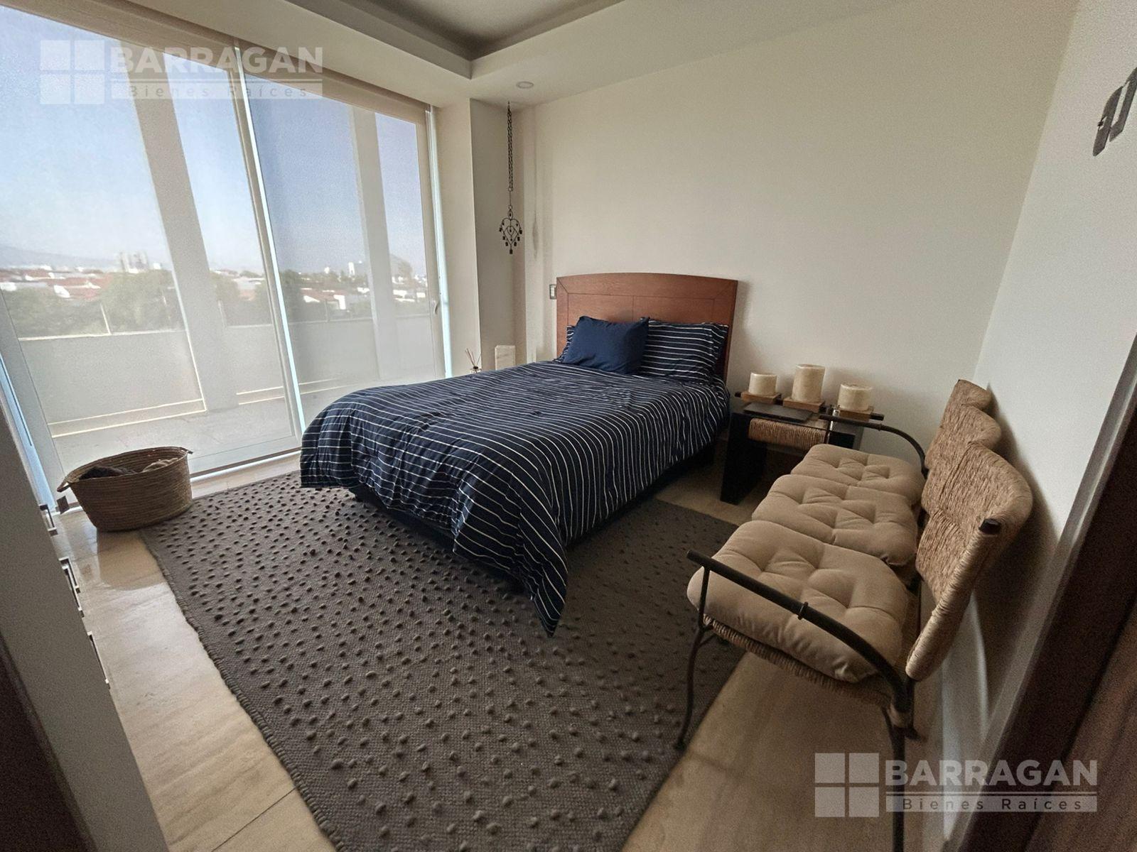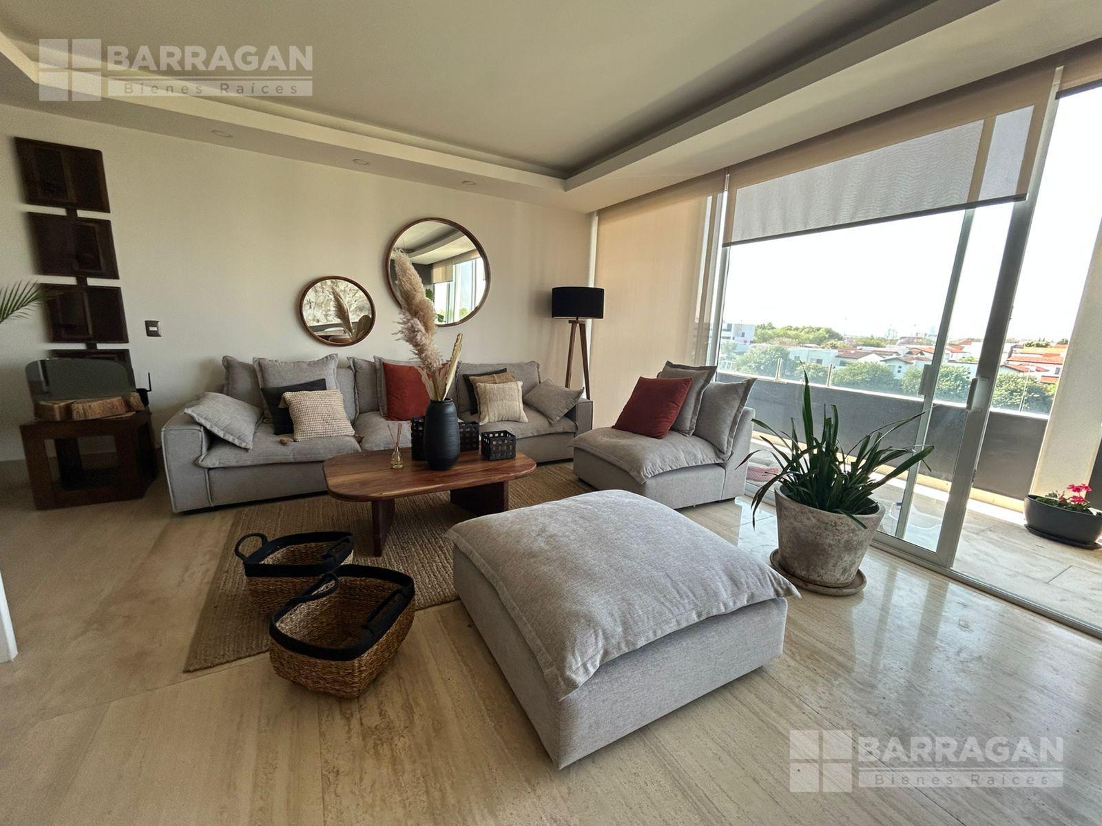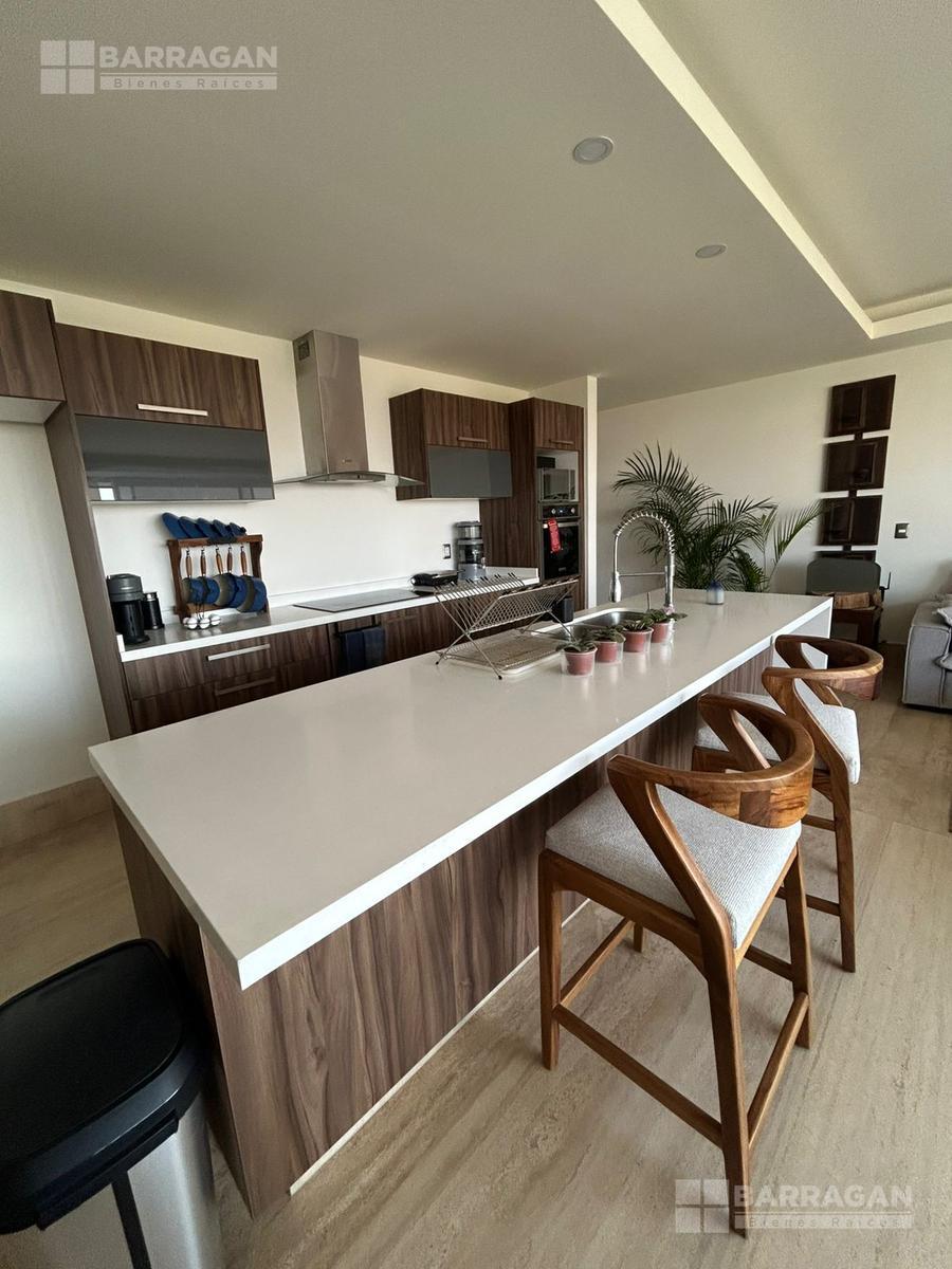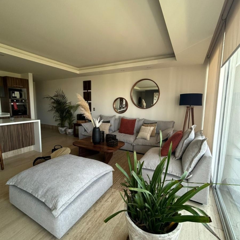 Amplio departamento de tres habitaciones, principal con vestidor y baño, secundarias comparten baño, cocina abierta equipada, excelentes acabados, amplio balcón con linda vista, estancia muy iluminada, área de lavado, cuarto de servicio con baño, 2 lugares de estacionamiento.