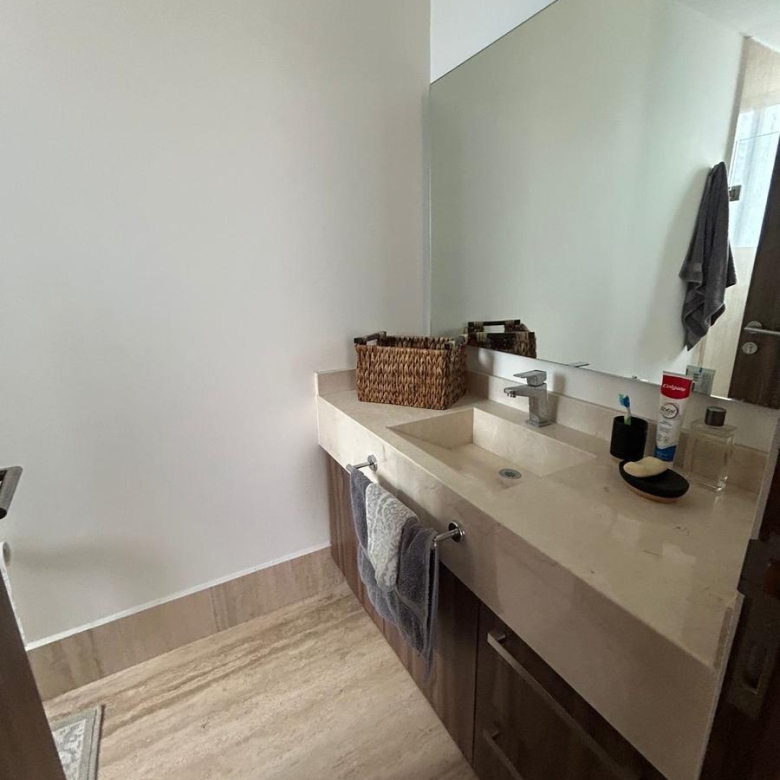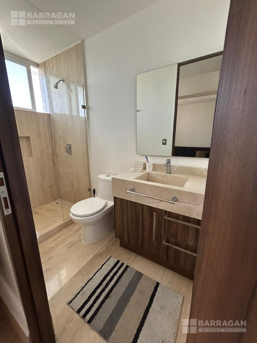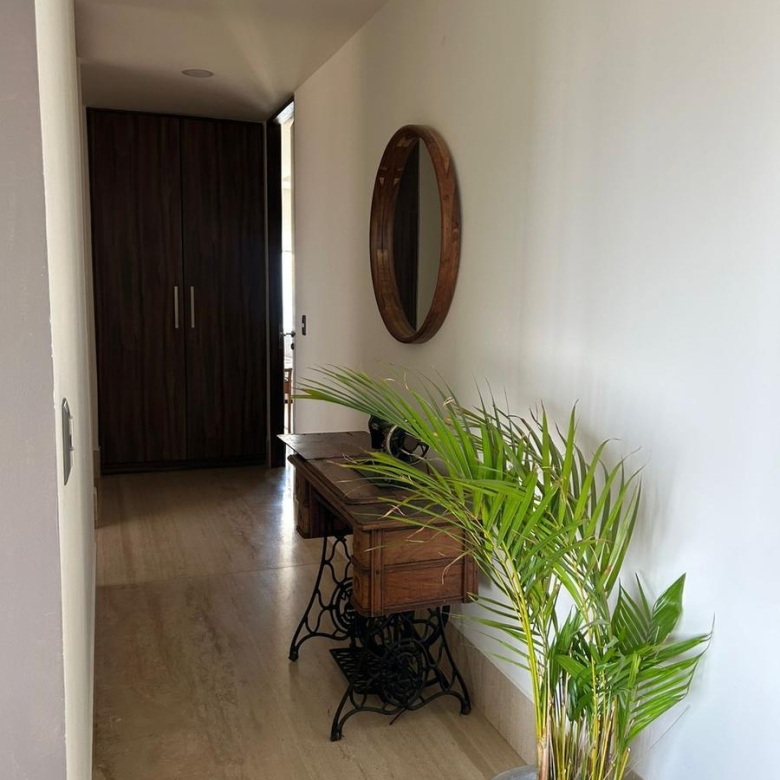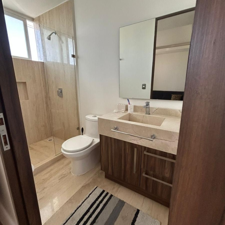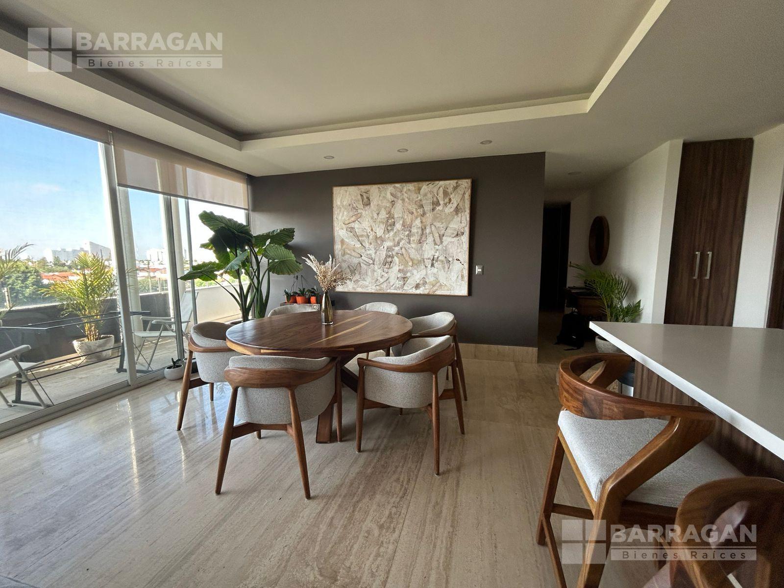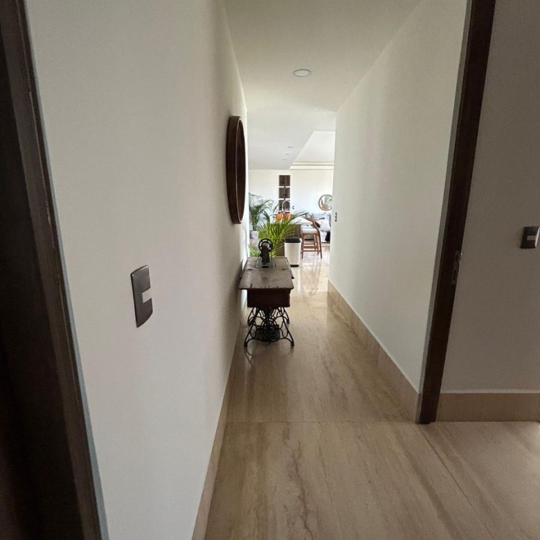 Amplio departamento de tres habitaciones, principal con vestidor y baño, secundarias comparten baño, cocina abierta equipada, excelentes acabados, amplio balcón con linda vista, estancia muy iluminada, área de lavado, cuarto de servicio con baño, 2 lugares de estacionamiento.