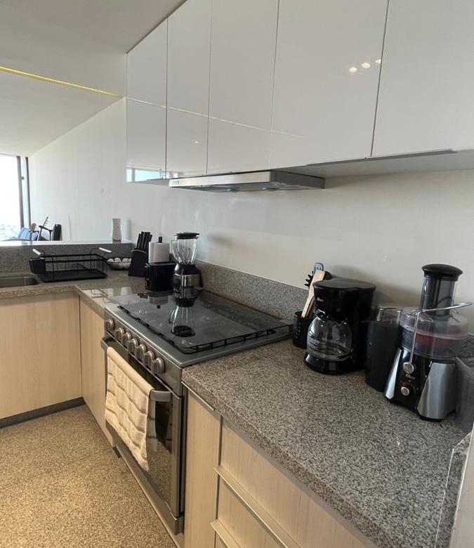Cuenta con dos recámaras, dos baños completos, sala comedor, cocina equipada, con área de servicio, balcón.