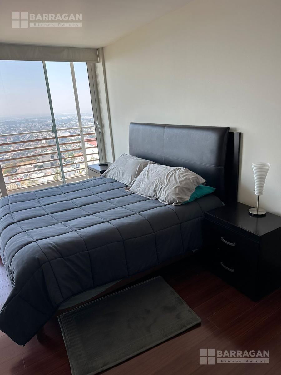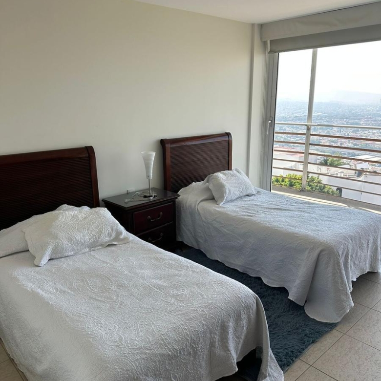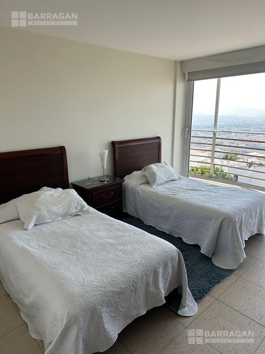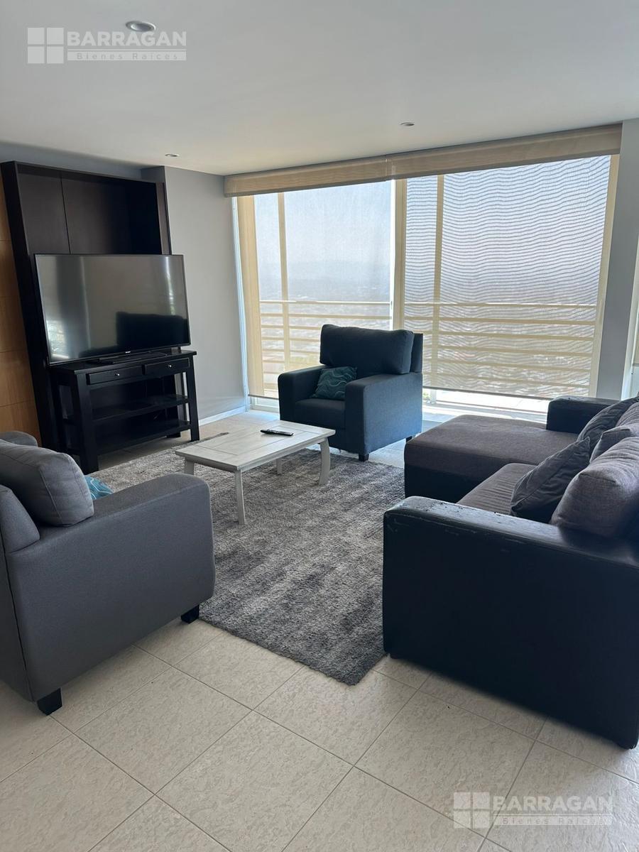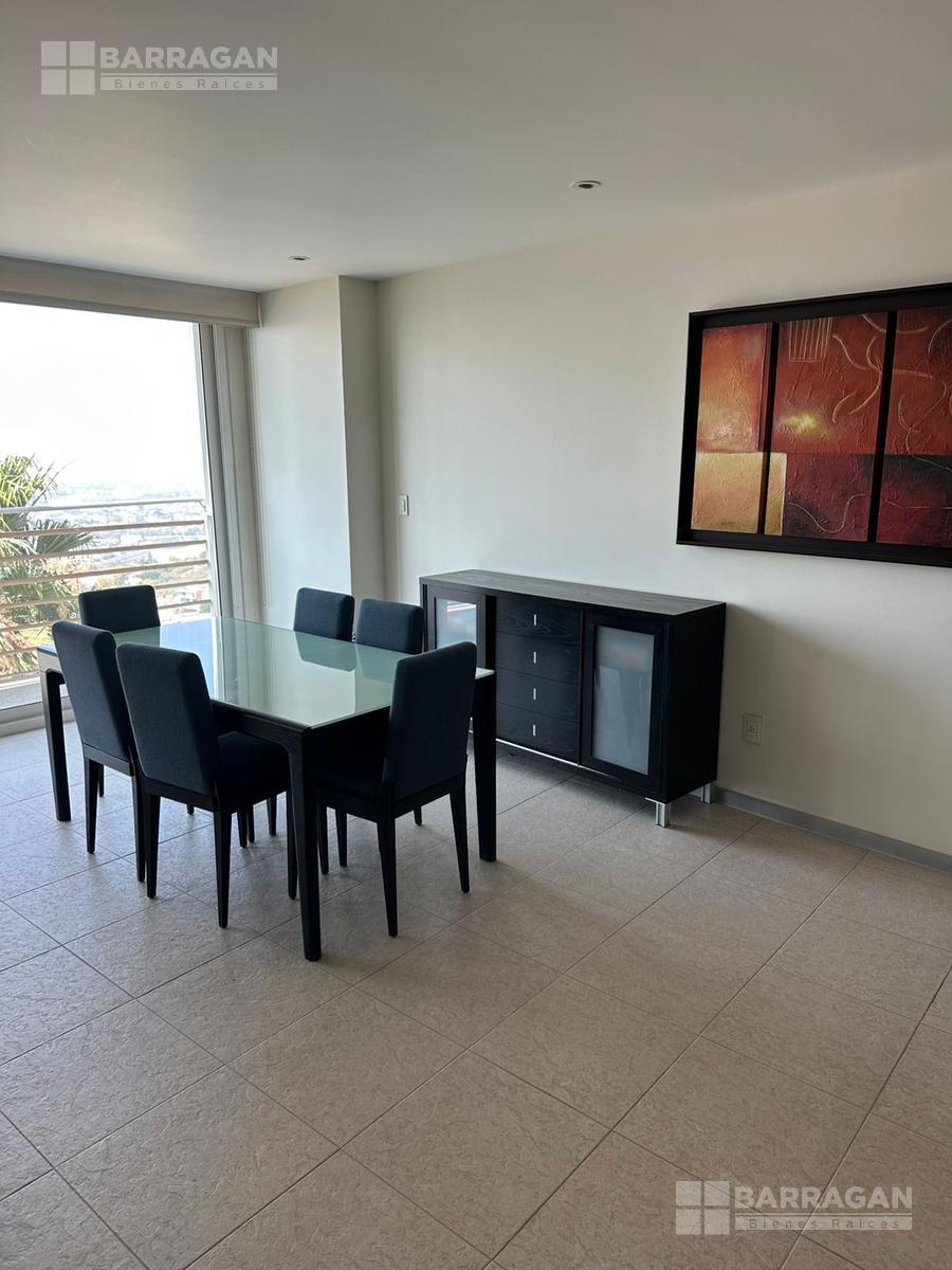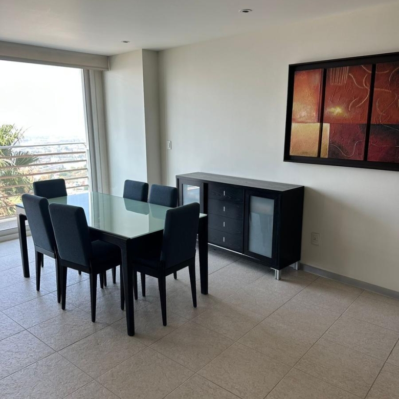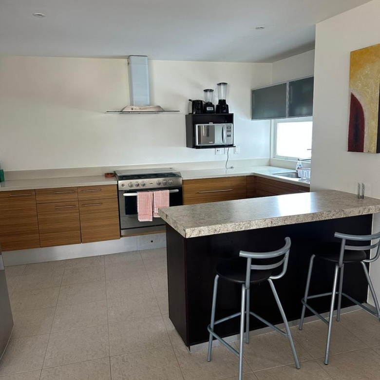 Amplio departamento con acceso directo del elevador, estancia , amplio balcón con vistas espectaculares, cocina equipada, lavanderia, habitación secundaria con baño completo compartido con area social y principal con walking closet y baño, 2 lugares de estacionamiento