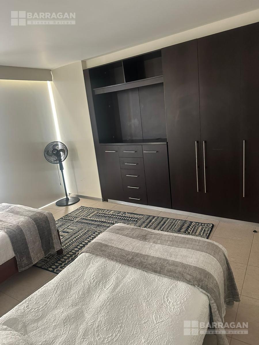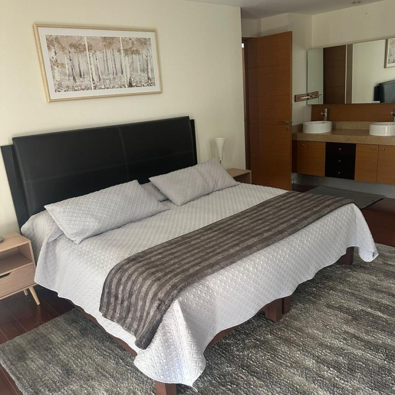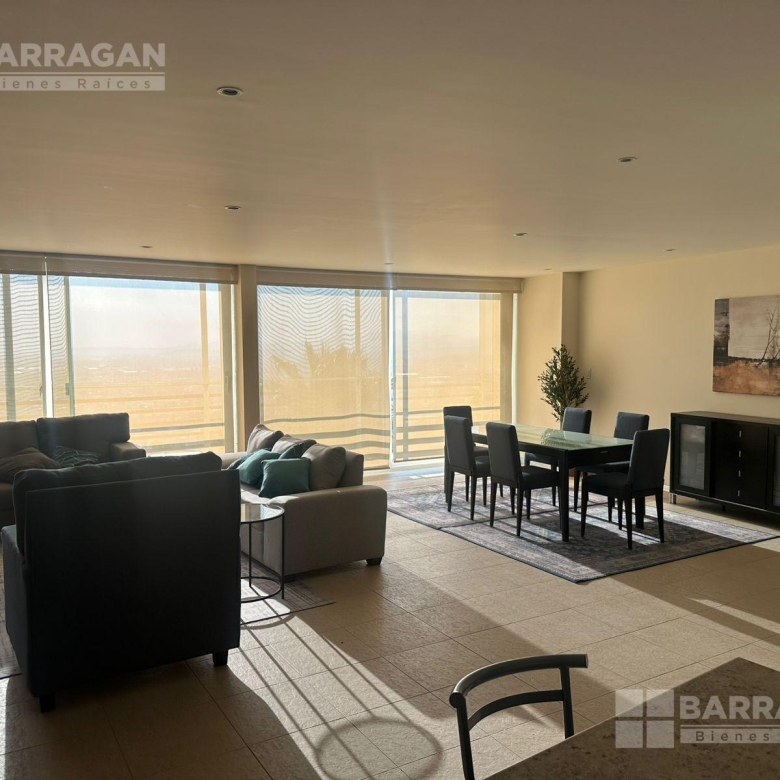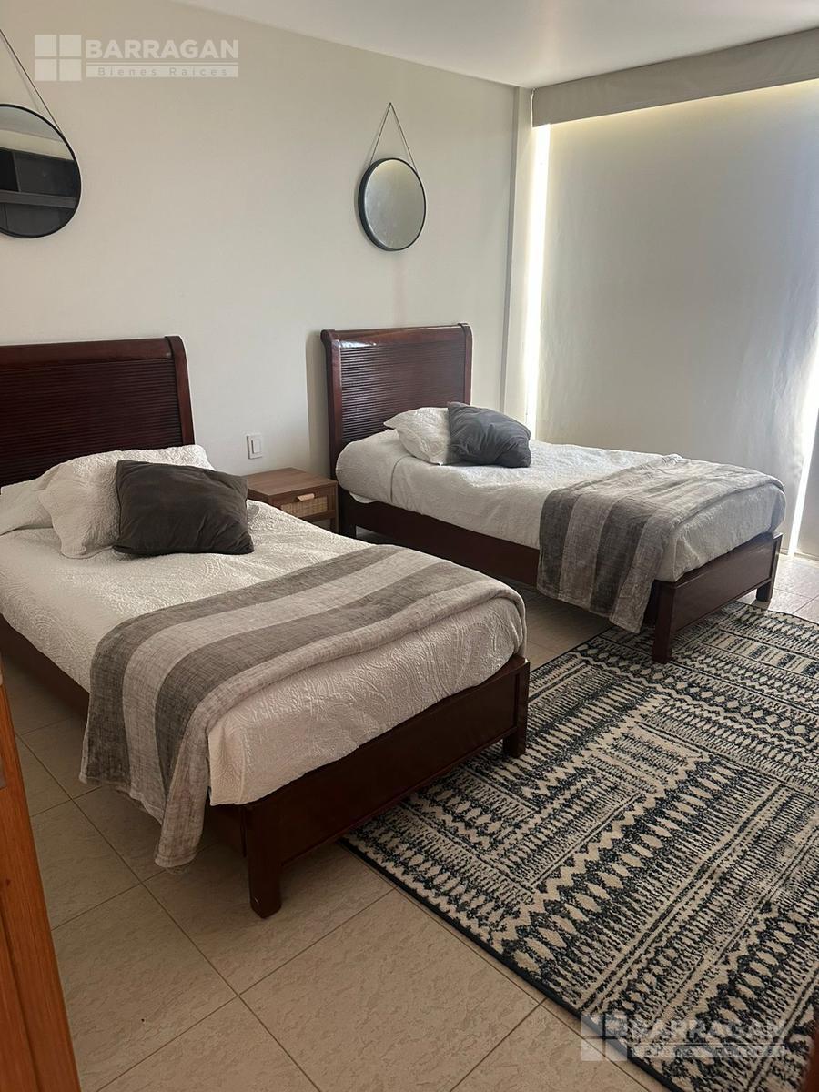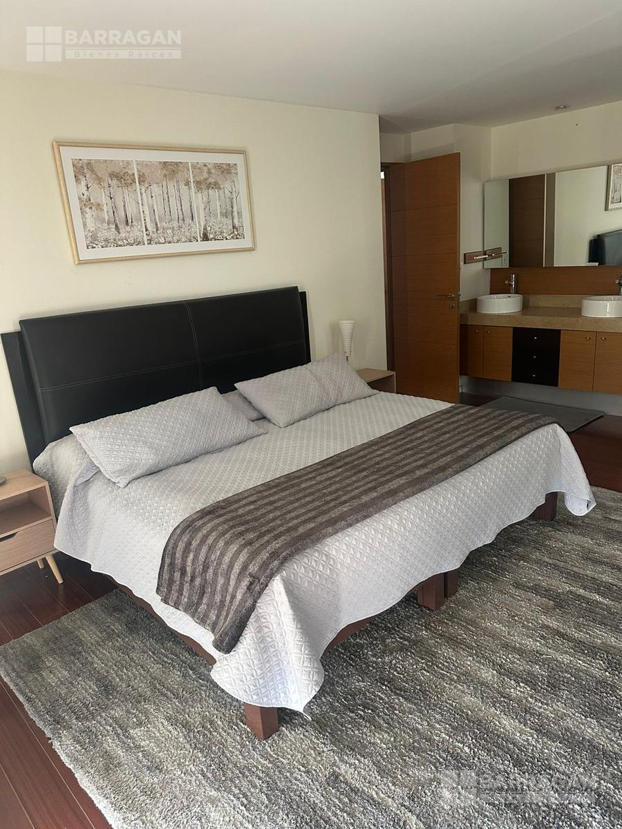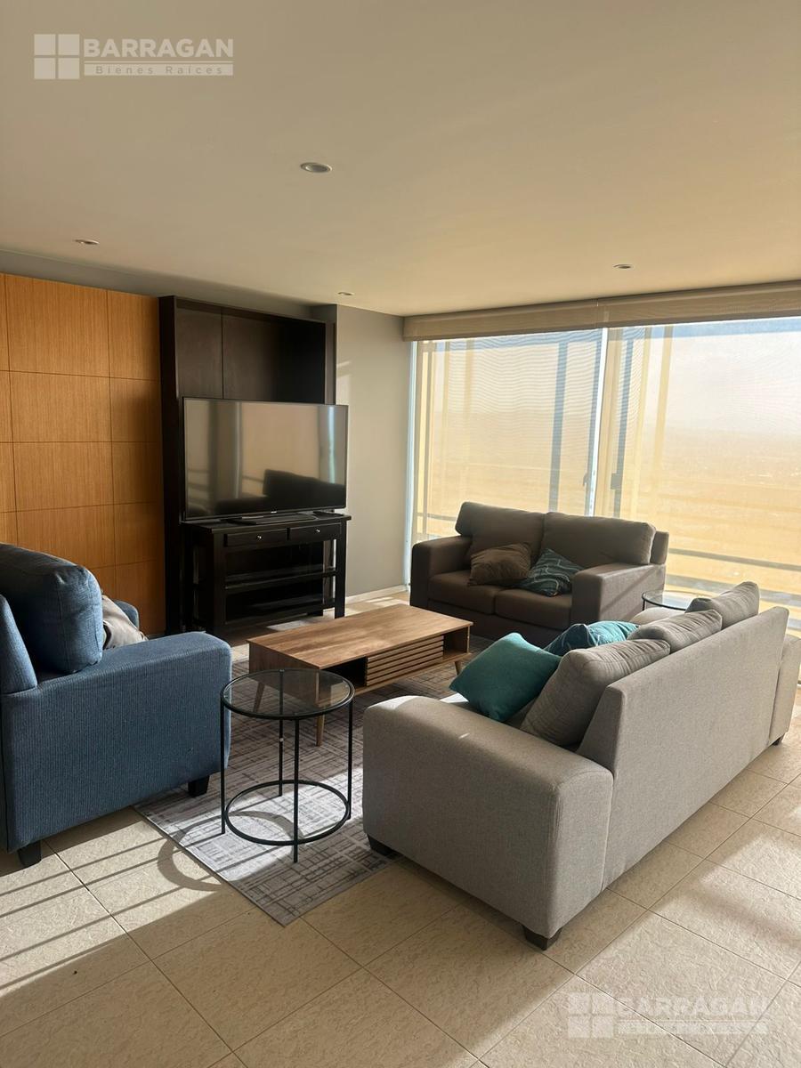 Amplio departamento amueblado con acceso directo del elevador, estancia , amplio balcón con vistas espectaculares, cocina equipada, lavanderia, habitación secundaria con baño completo compartido con area social y principal con walking closet y baño, 2 lugares de estacionamiento