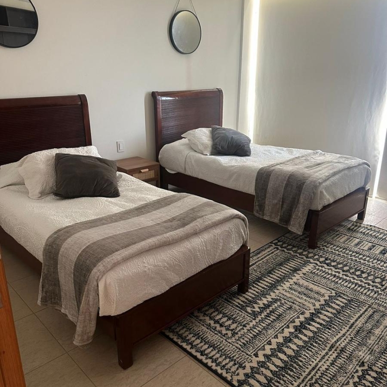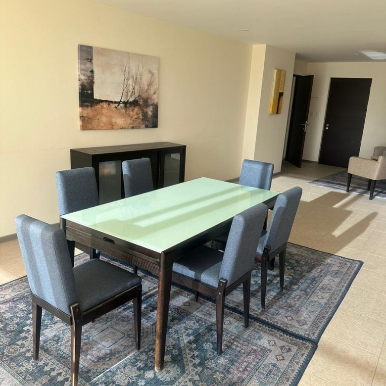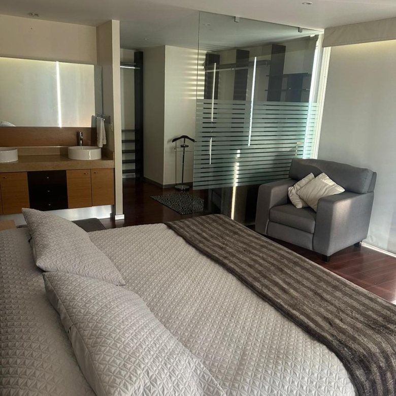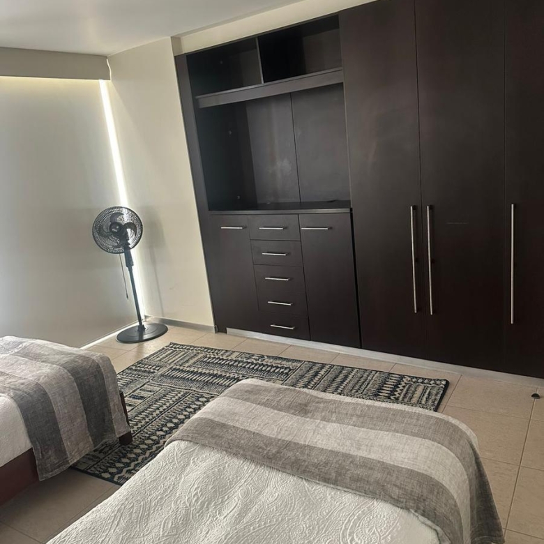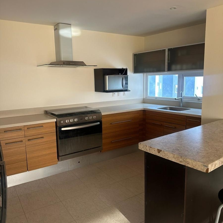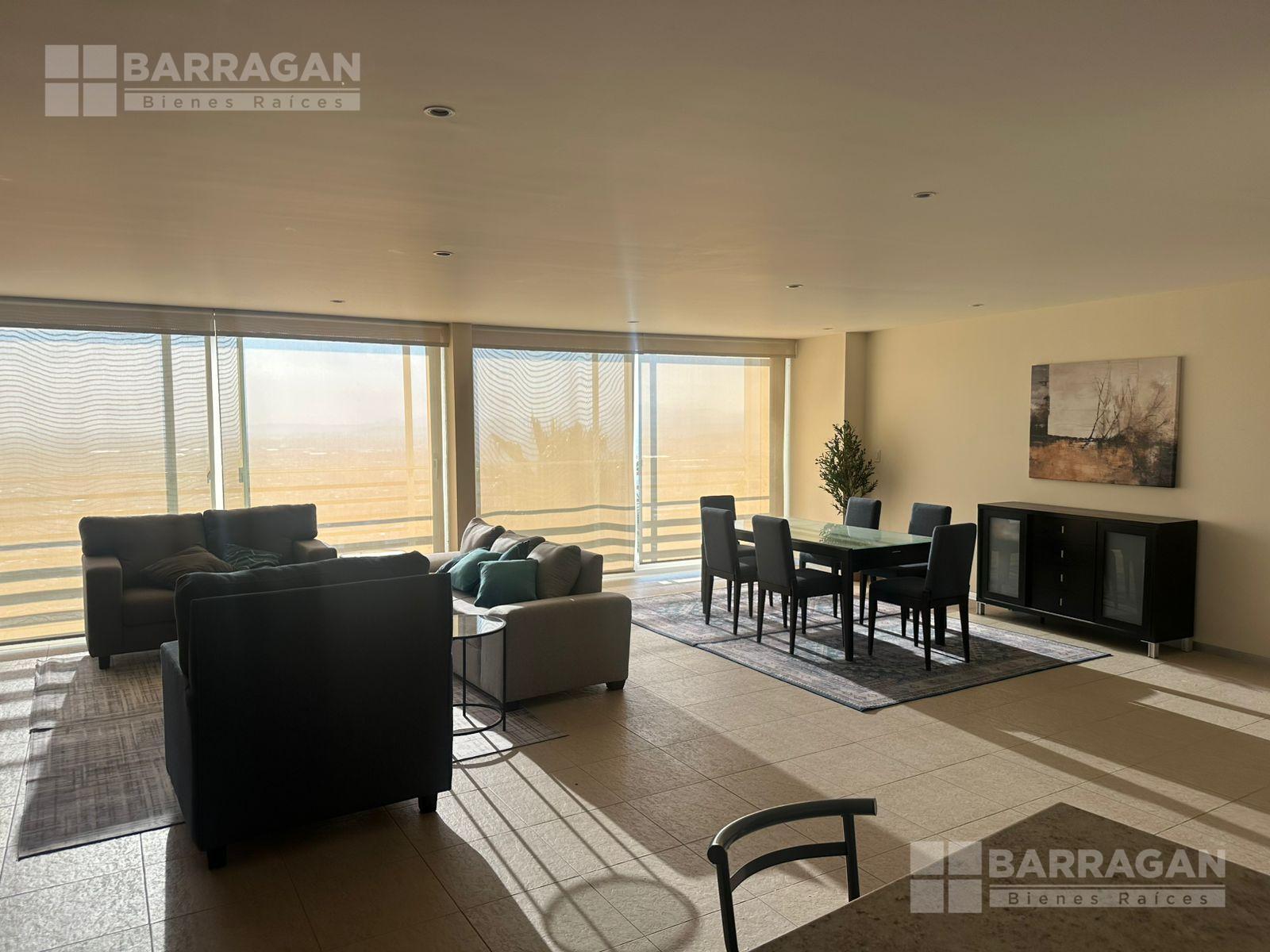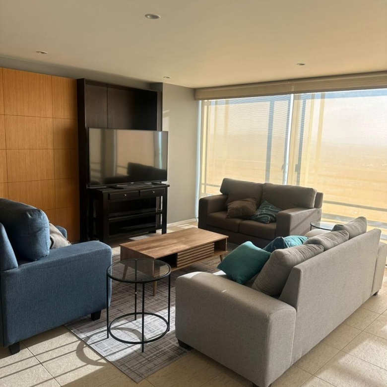 Amplio departamento amueblado con acceso directo del elevador, estancia , amplio balcón con vistas espectaculares, cocina equipada, lavanderia, habitación secundaria con baño completo compartido con area social y principal con walking closet y baño, 2 lugares de estacionamiento