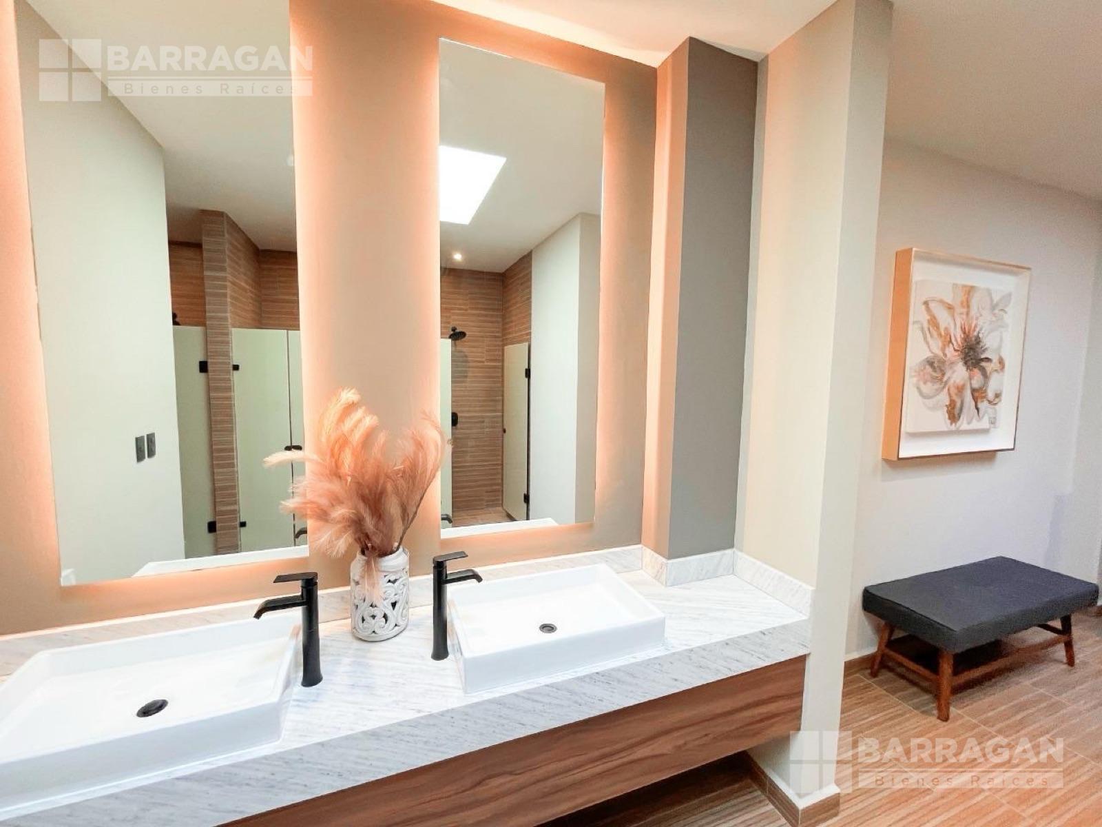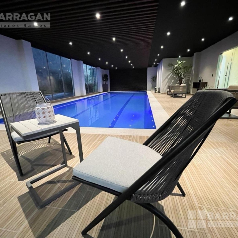 Espectacular departamento en renta con excelente distribución y acabados. Cuenta con dos recámaras, la principal con vestidor y baño completo, y la secundaria con clóset. Dispone de 2 baños completos en total, amplia sala y comedor con acceso a una agradable terraza, cocina equipada y funcional, además de área de lavado independiente. Ideal para quienes buscan comodidad y estilo en un solo espacio.