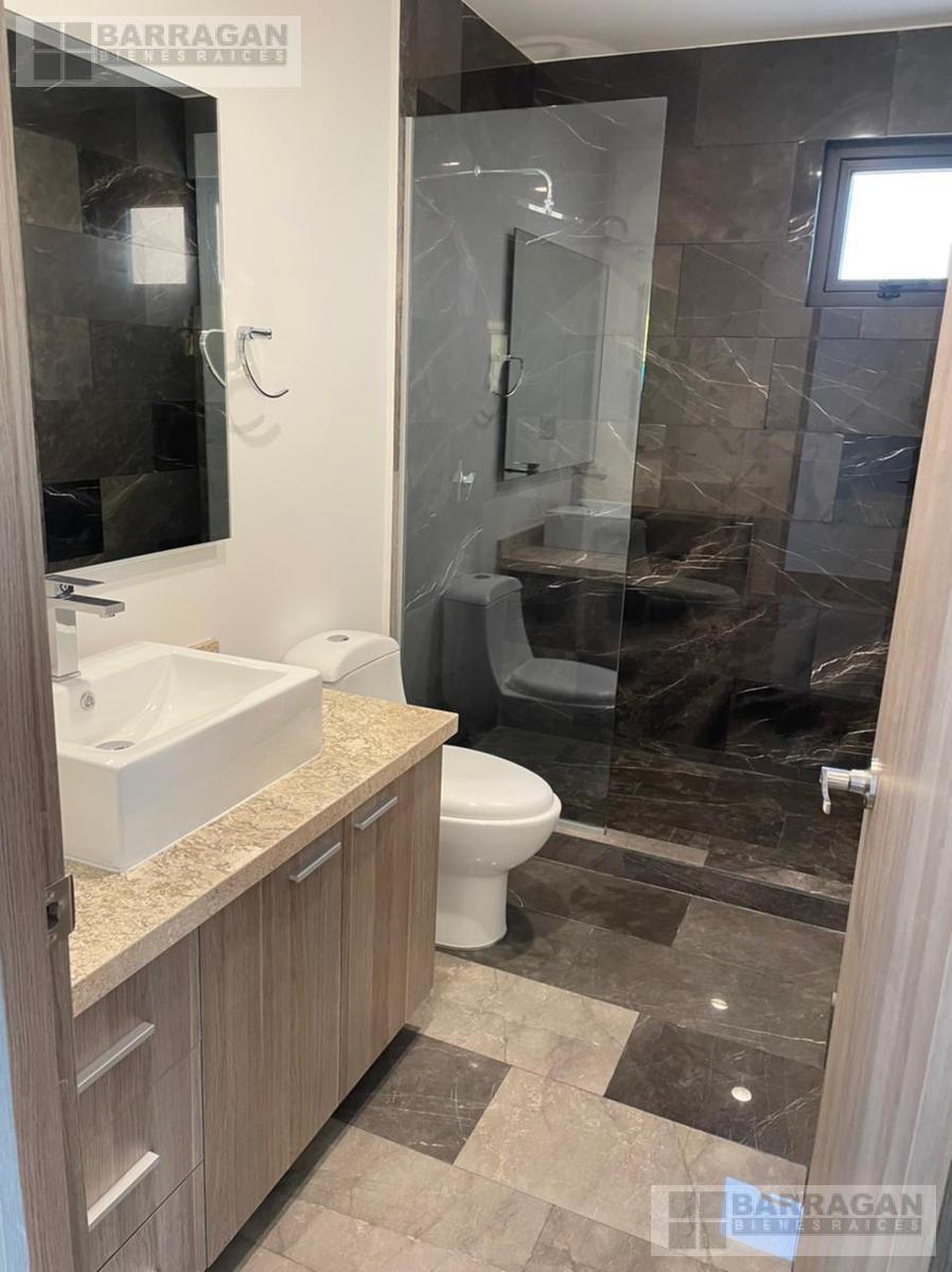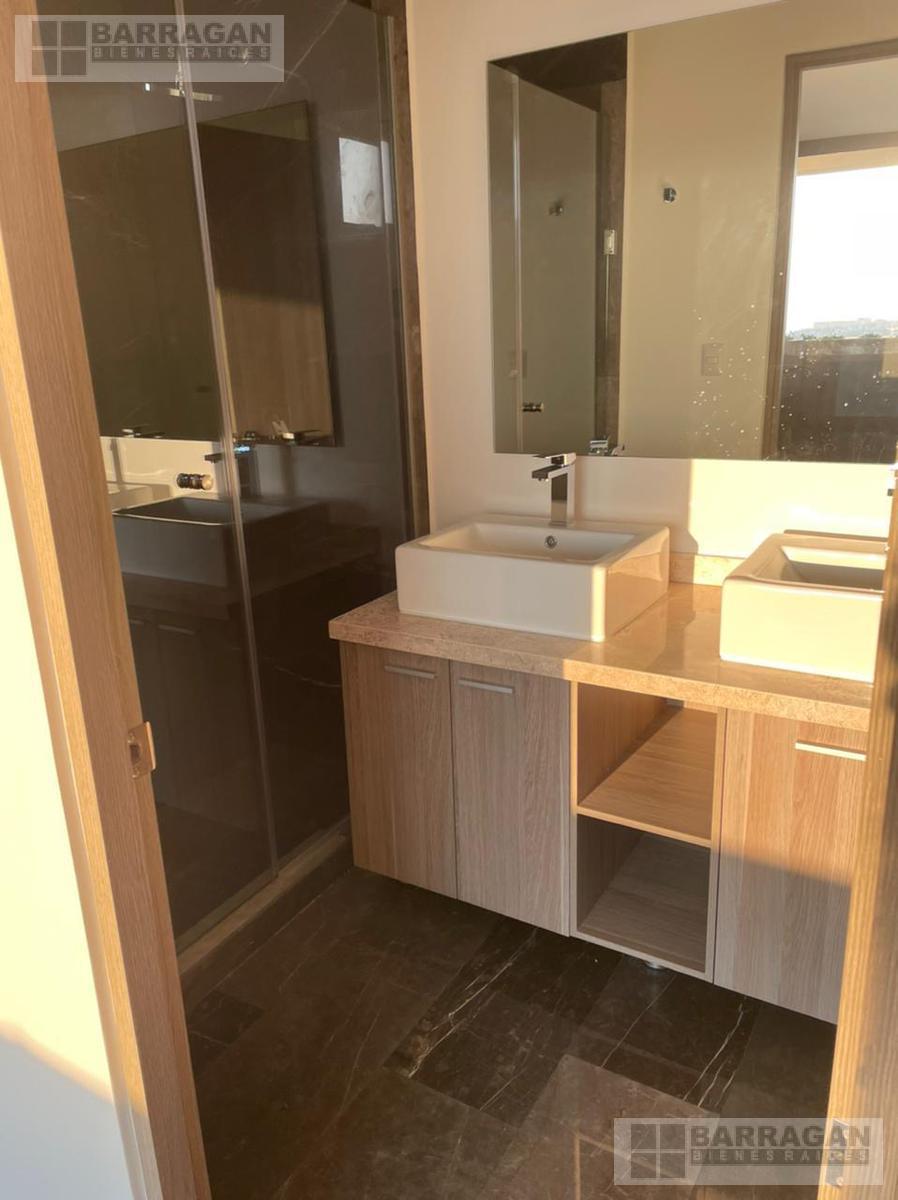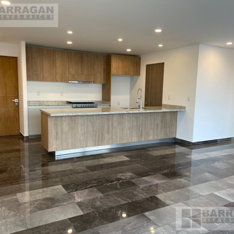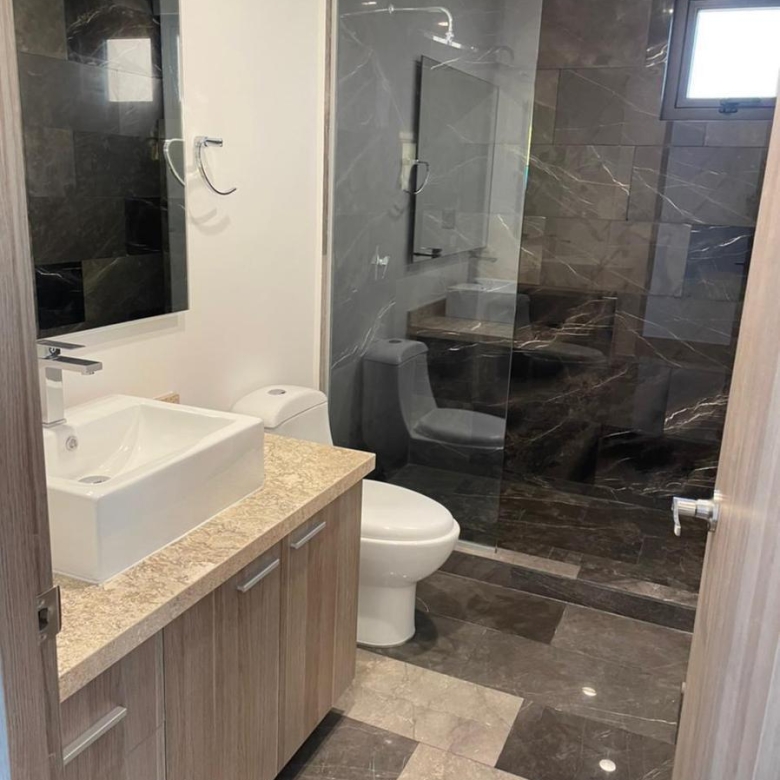 Encontramos al entrar, la sala, comedor, cocina equipada, y dos habitaciones cada una con baño completo. El departamento cuenta con área de lavado, bodega y estacionamiento para dos autos.