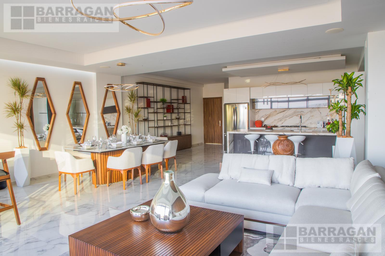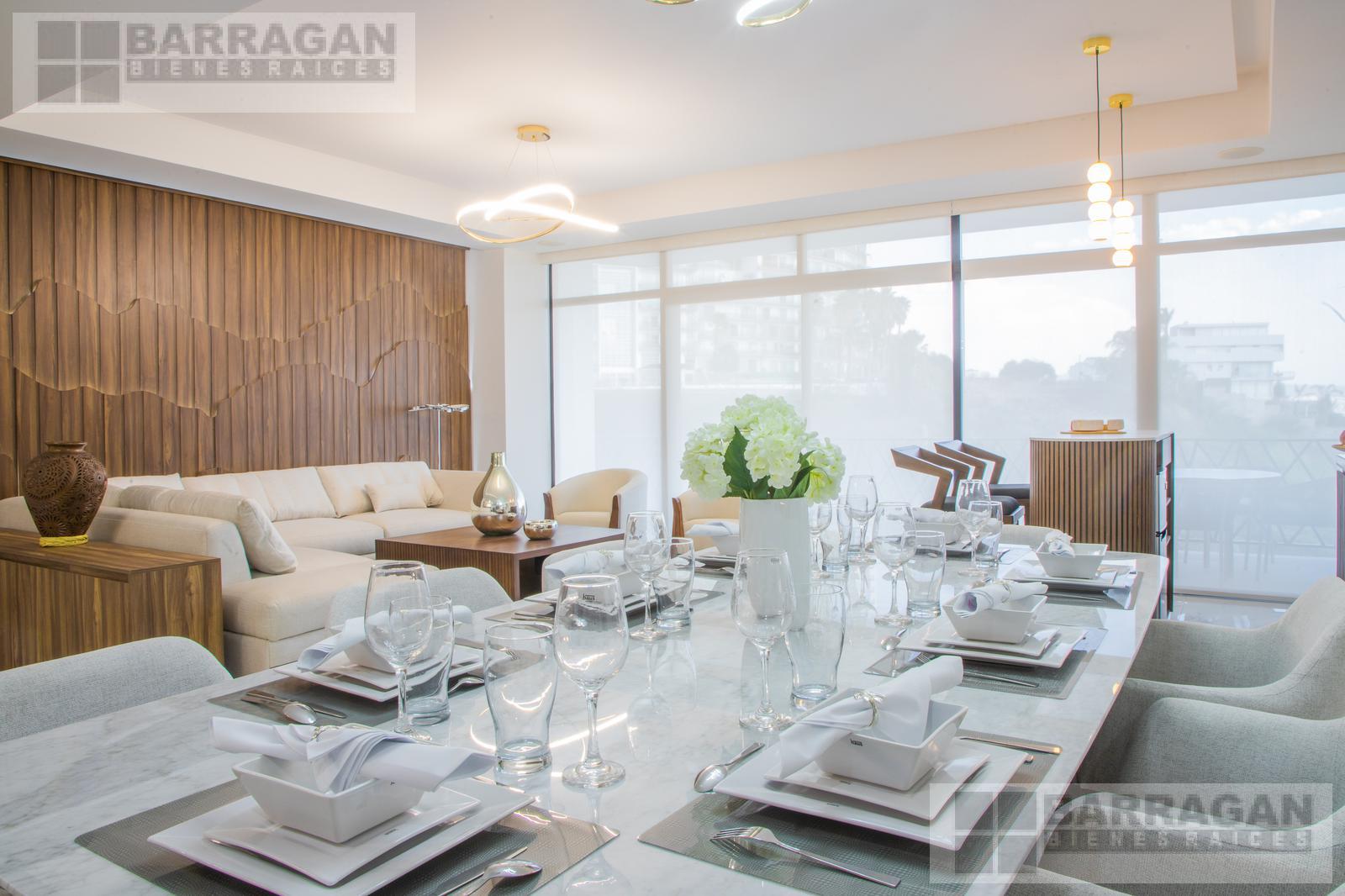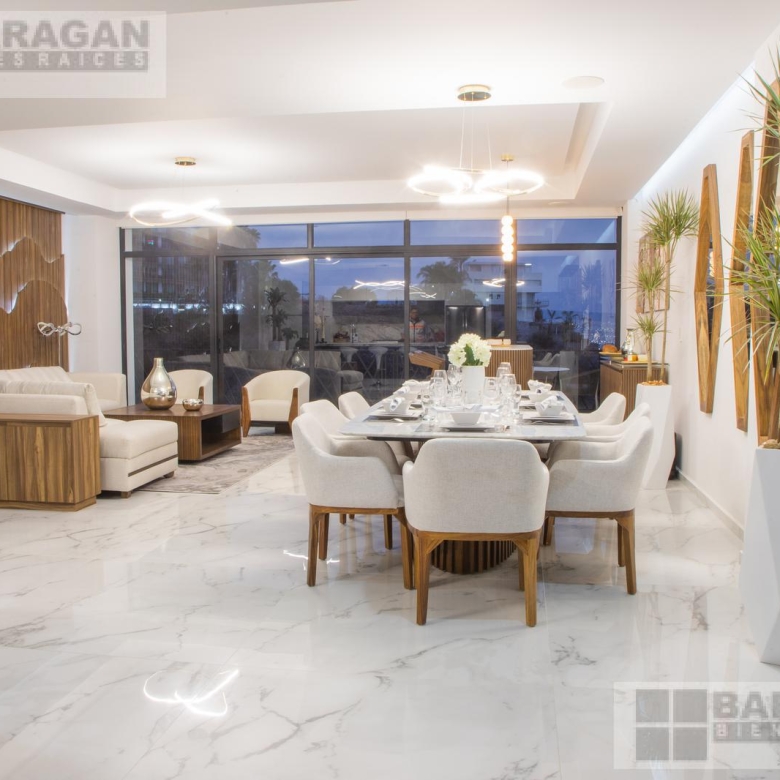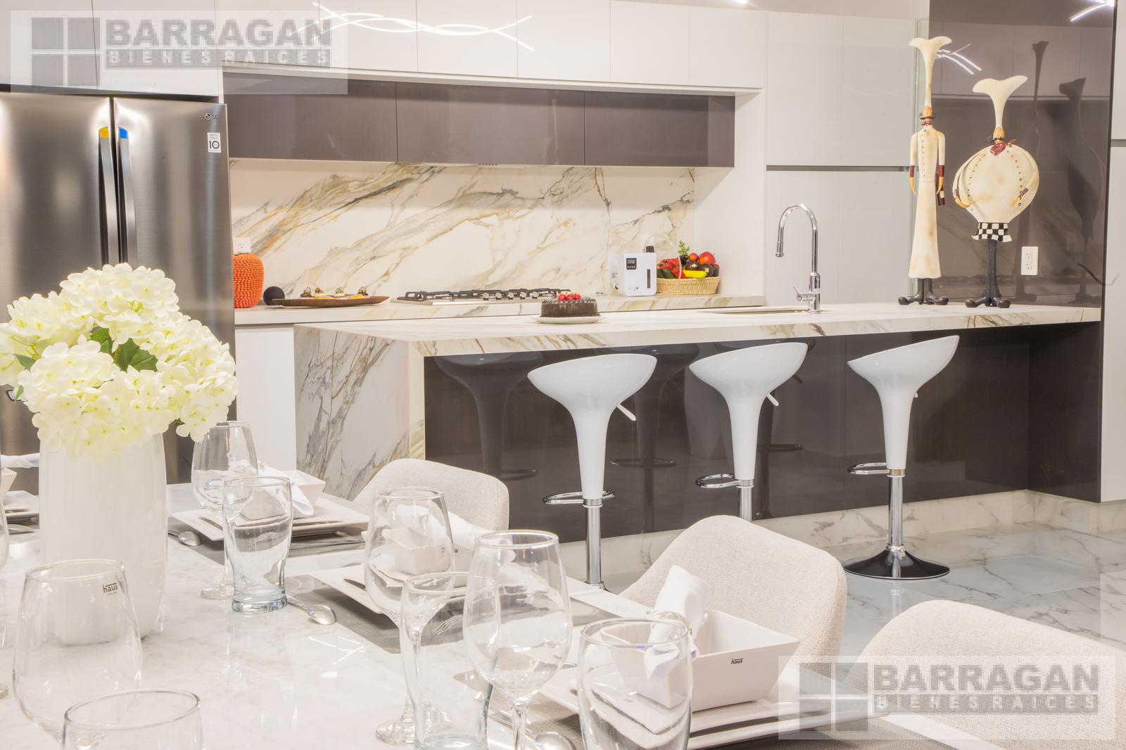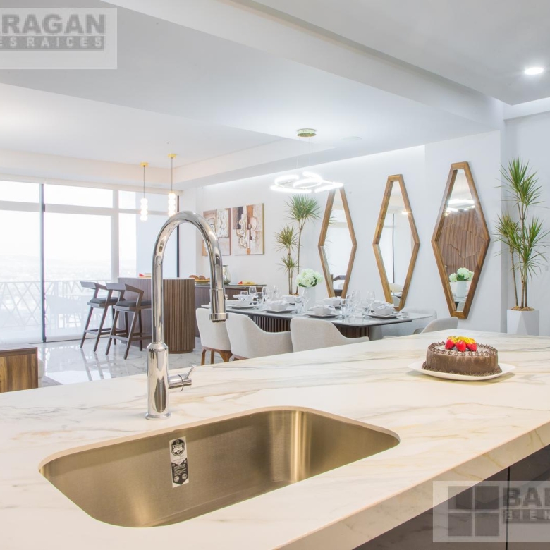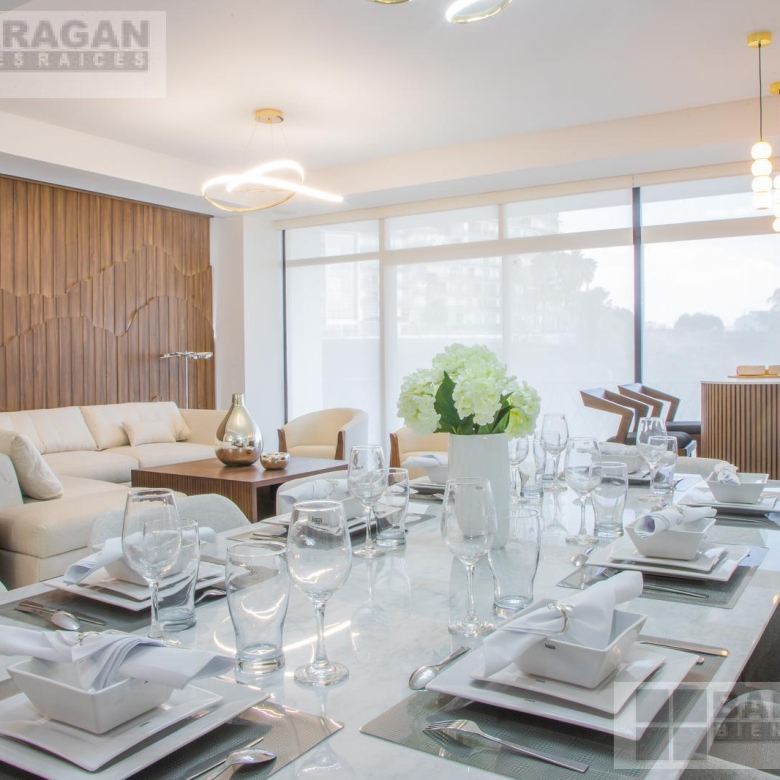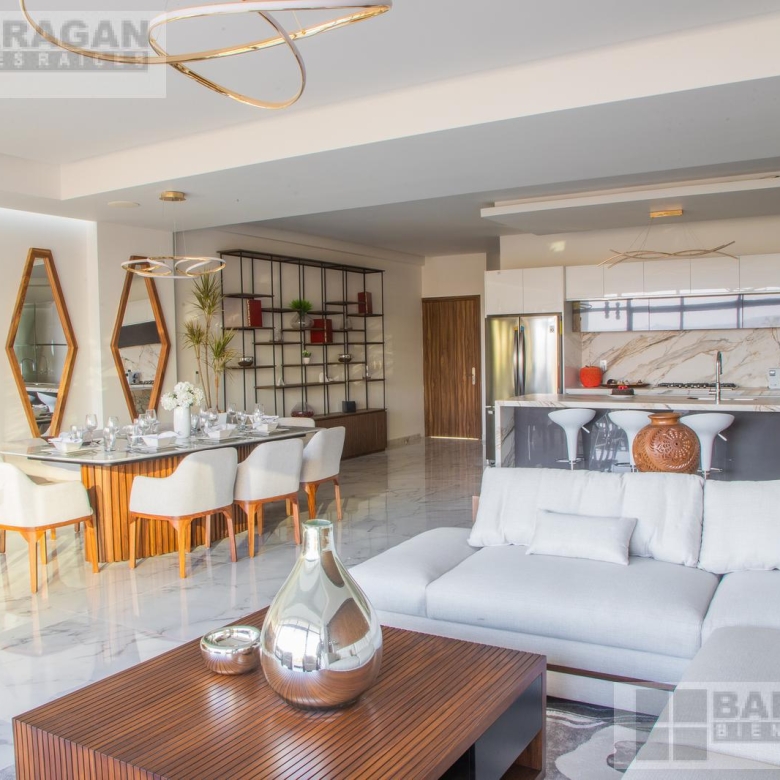El área social ofrece una elegante sala y comedor en concepto abierto, que se integra armoniosamente con la terraza, creando un ambiente ideal para convivencias y momentos especiales. La cocina totalmente equipada complementa el diseño con practicidad y estilo, además de contar con un espacio de bar perfecto para recibir invitados.