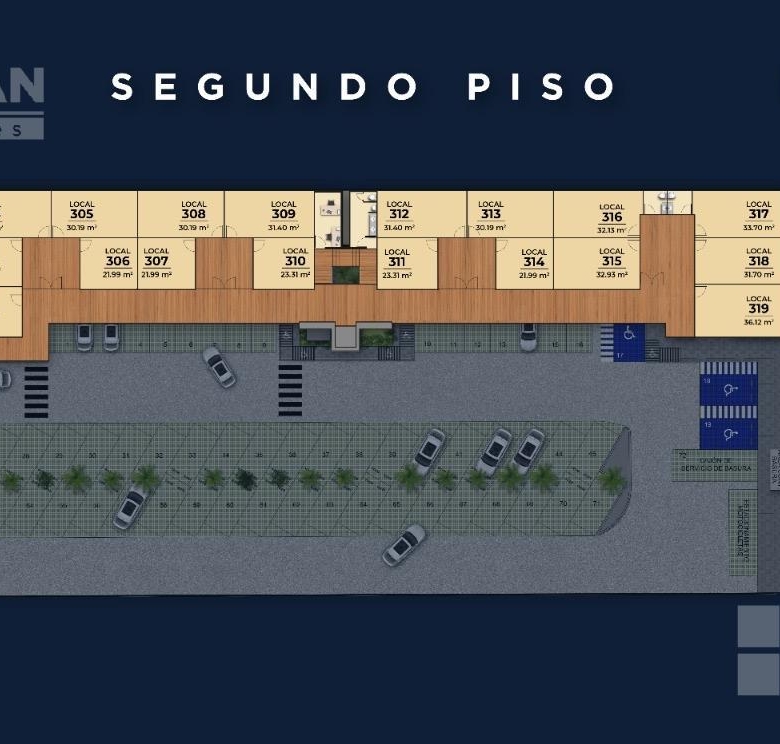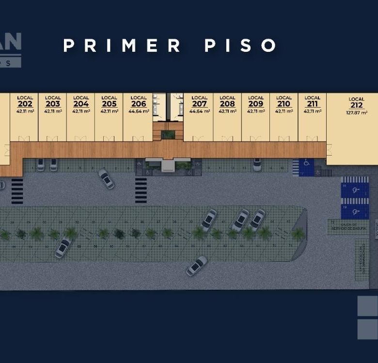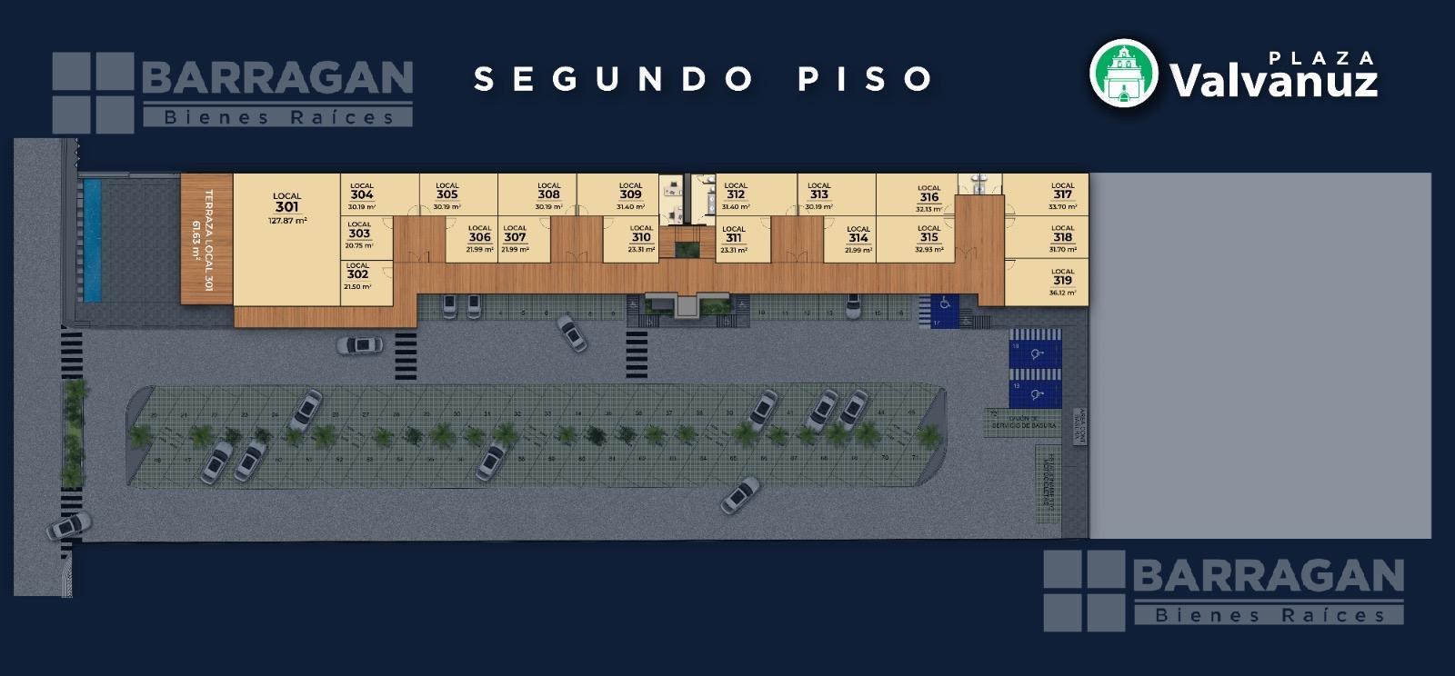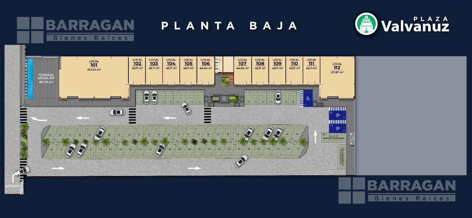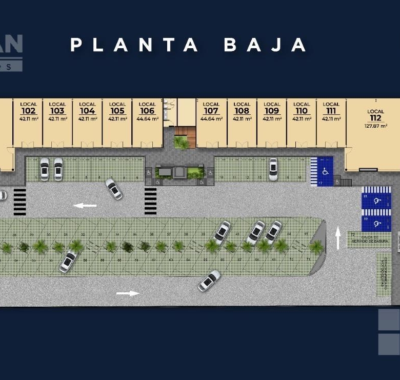 Cuenta con 25 locales comerciales y 18 oficinas, 72 cajones de estacionamiento, baños para clientes, elevador, una hermosa fuente como distintivo, terrazas, áreas verdes.