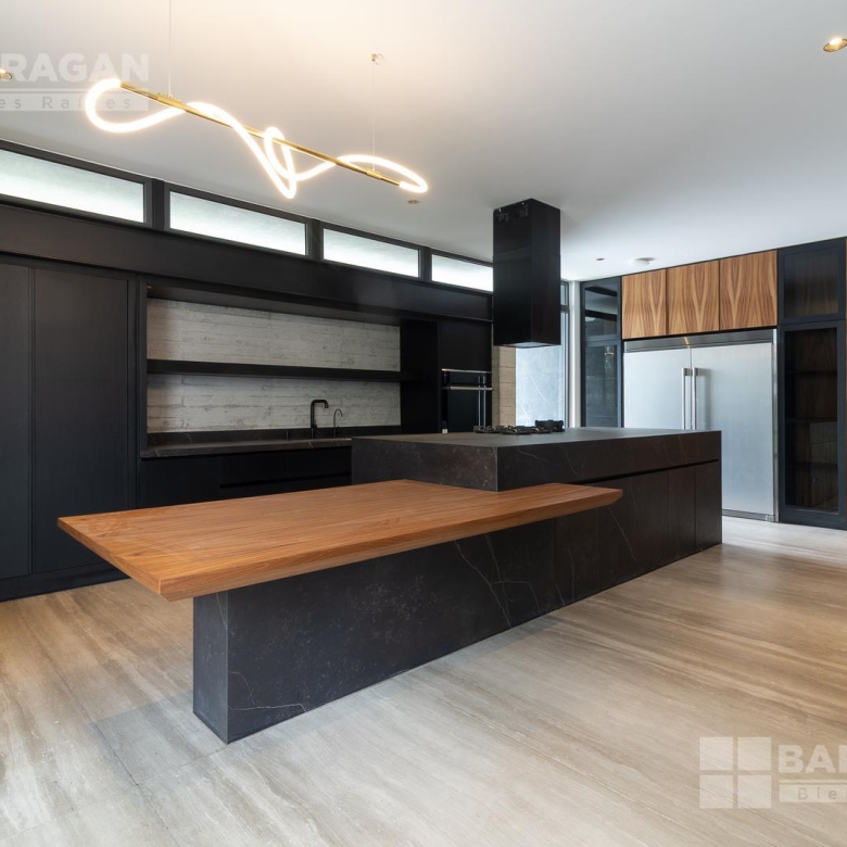 En planta baja también encontrarás un cine privado, un medio baño para visitas y una cocina integral espectacular, equipada con una despensa de lujo que incluye múltiples gabinetes, cajones y repisas diseñados para maximizar organización y estilo.