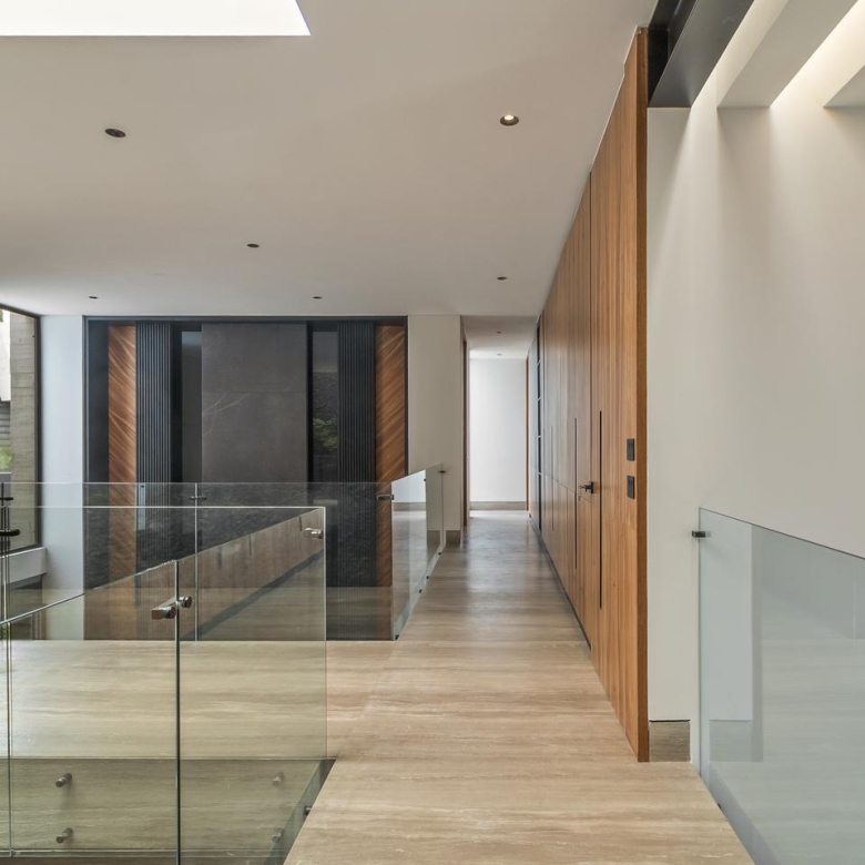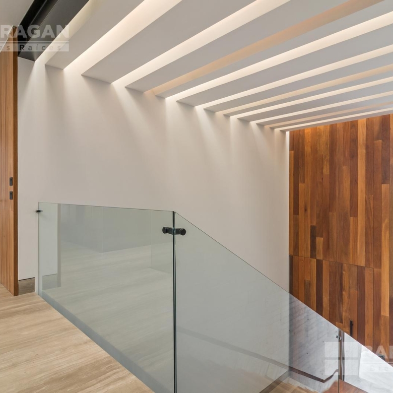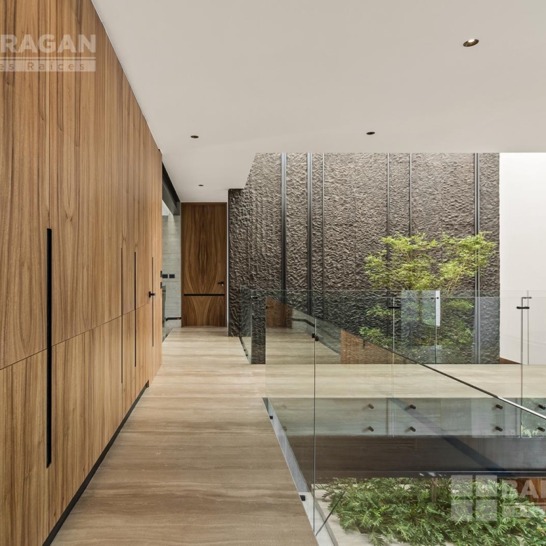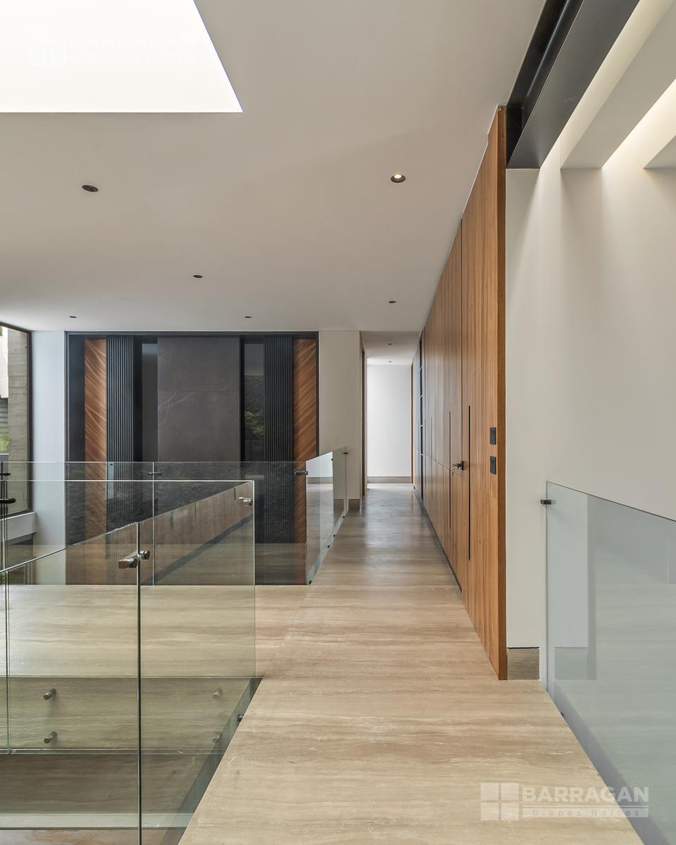 En planta alta, la recámara principal cuenta con un balcón privado, un vestidor muy amplio y un baño de diseño. Dos recámaras secundarias están conectadas por un gran vestidor y baño compartido, y una cuarta recámara para visitas completa esta zona, ofreciendo privacidad y confort para tus invitados.