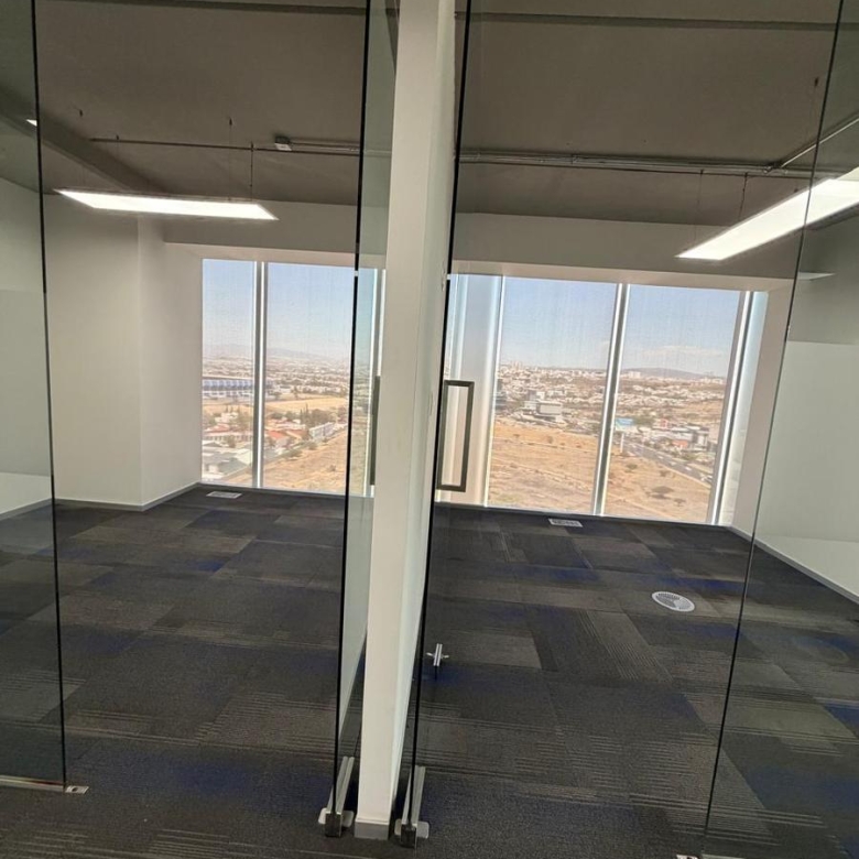 Oficina corporativa en renta en zona de negocios de prestigio cerca de la Terminal de Autobuses, bancos y el Estadio Corregidora, con vistas panorámicas, plantas flexibles.