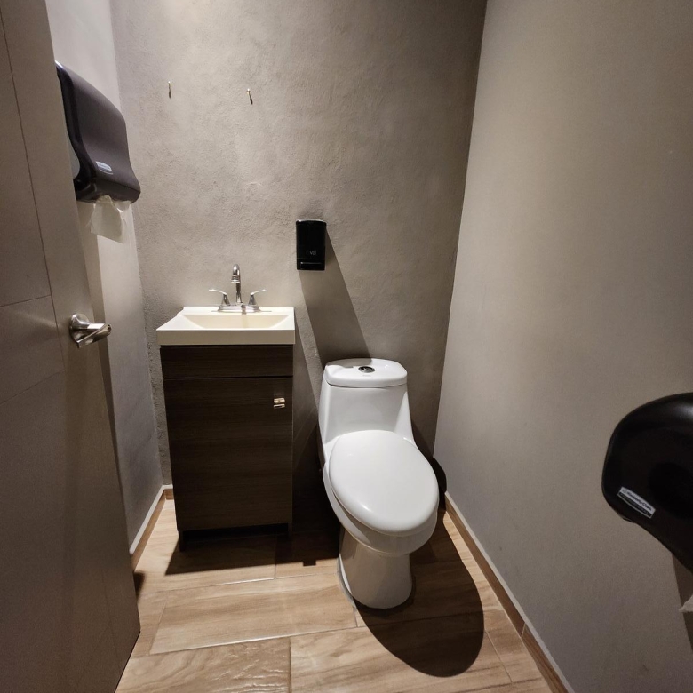 El edificio cuenta con baños comunes, elevador, estacionamiento abierto y subterráneo. Plaza con seguridad 24h.