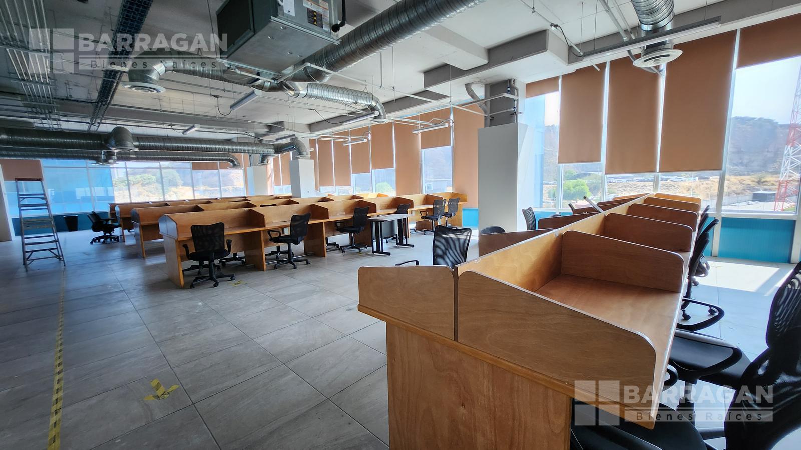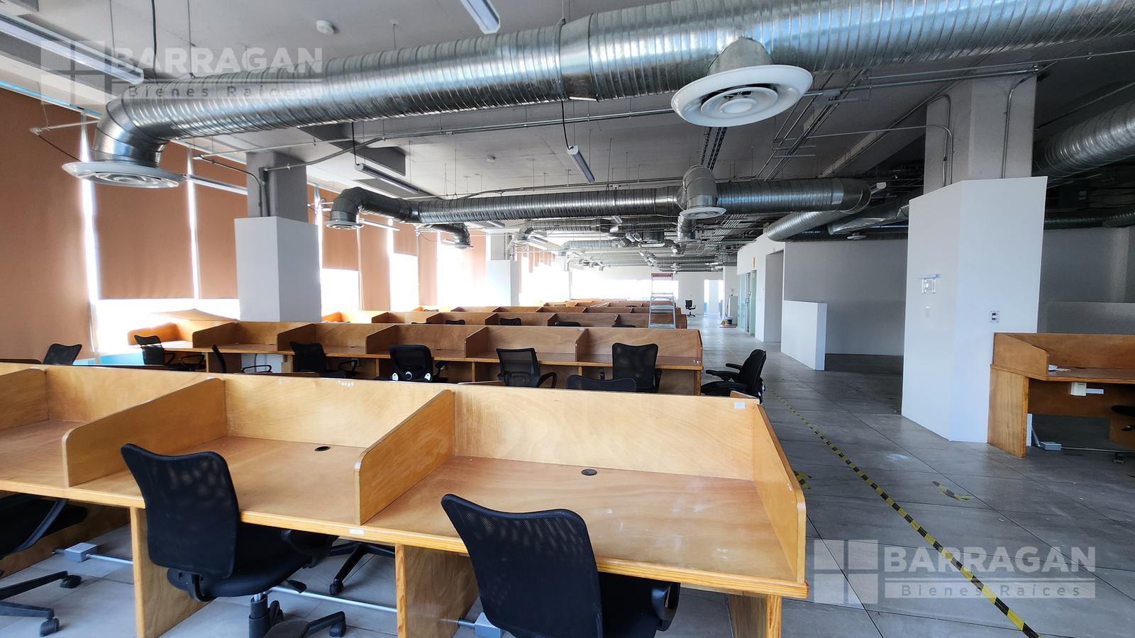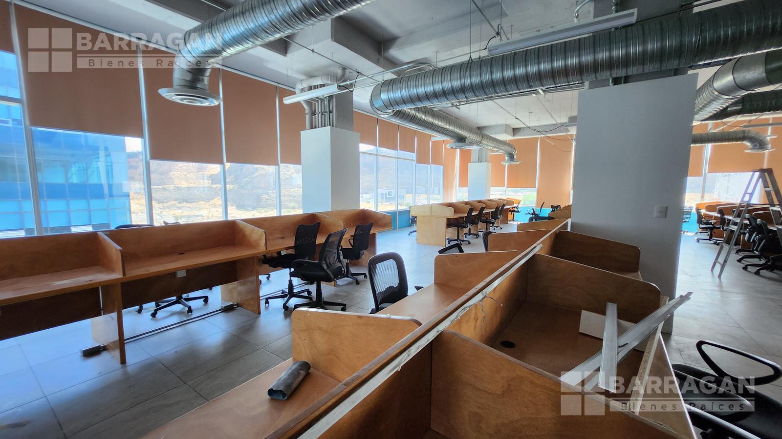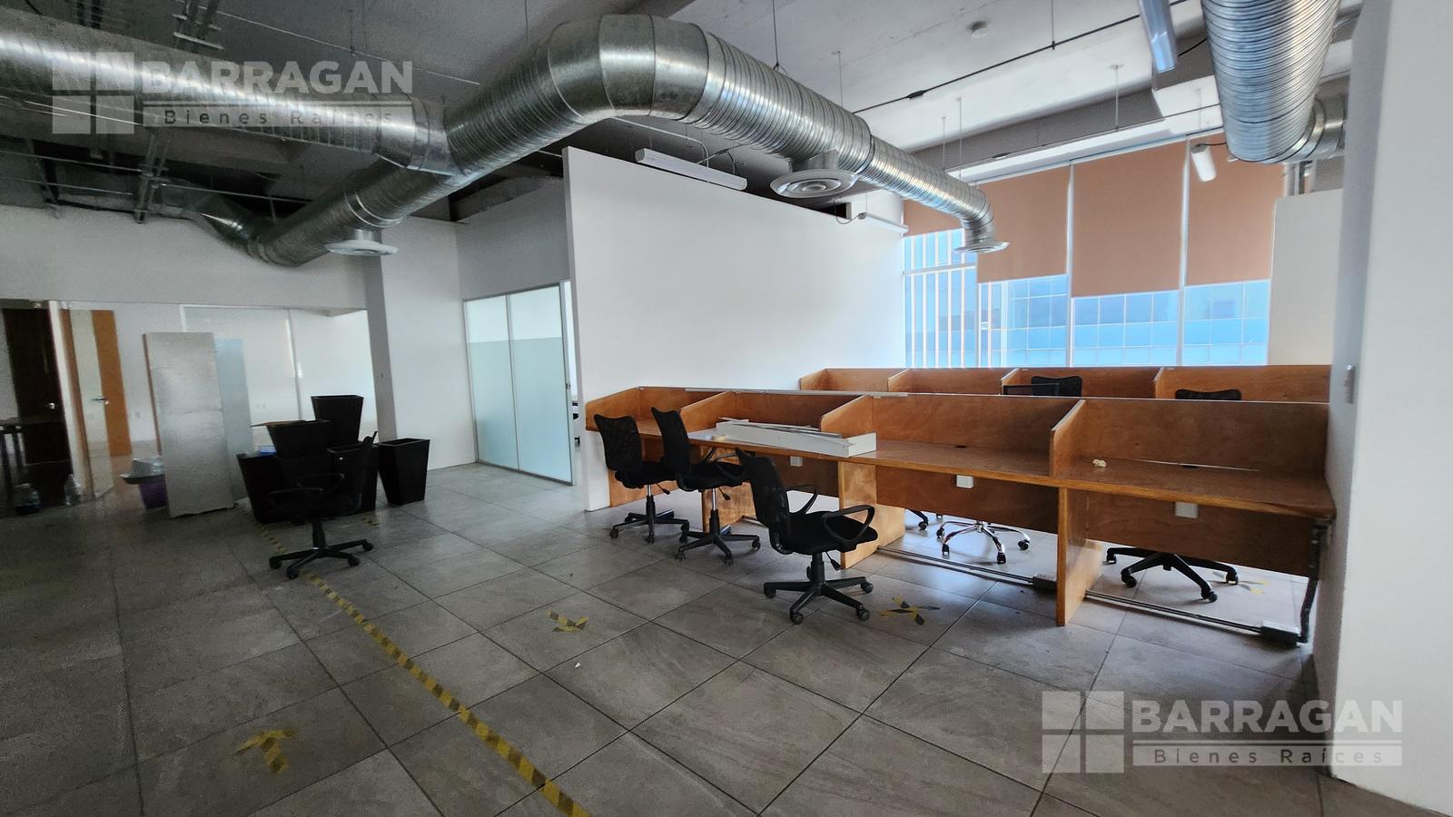 Esta oficina tiene zona de recepción, cinco privados, módulos con cubículos para 108 personas, área de lockers, cuarto para servidor, baños hombres y mujeres, sala de juntas que se puede dividir en tres.