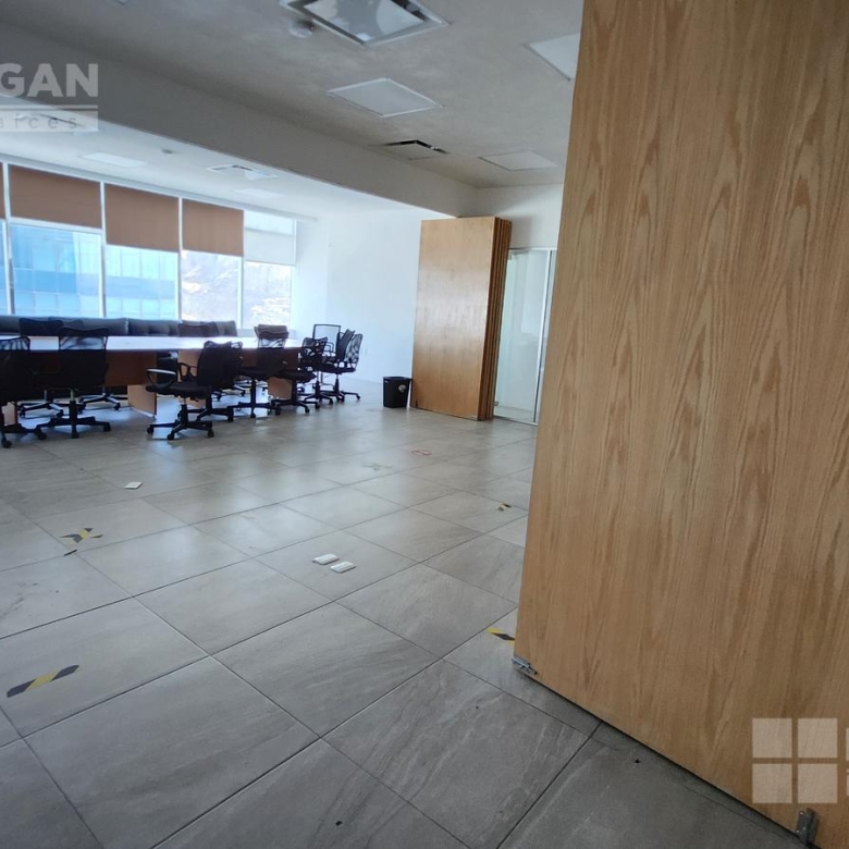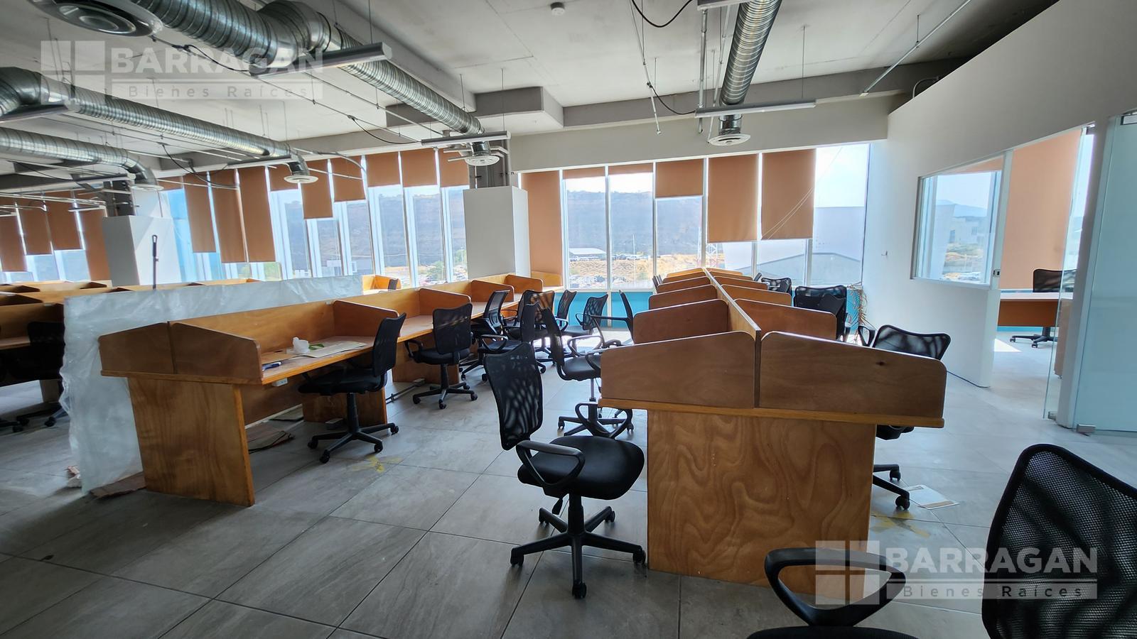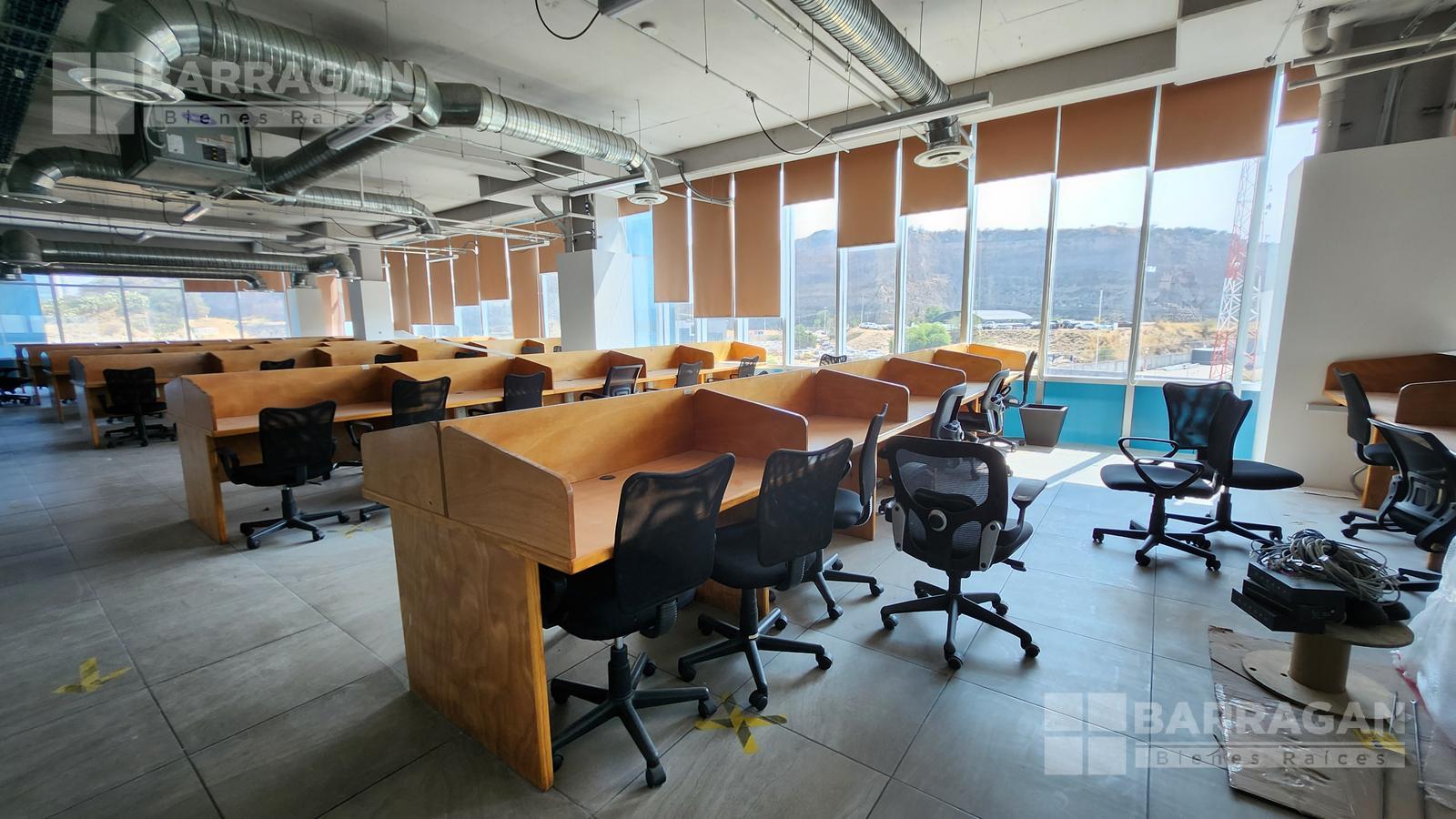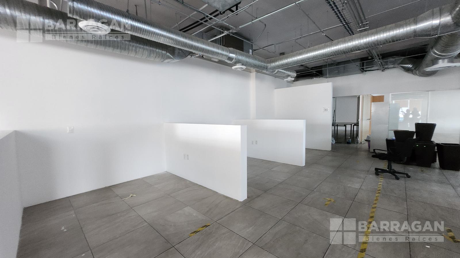 Esta oficina tiene zona de recepción, cinco privados, módulos con cubículos para 108 personas, área de lockers, cuarto para servidor, baños hombres y mujeres, sala de juntas que se puede dividir en tres.
