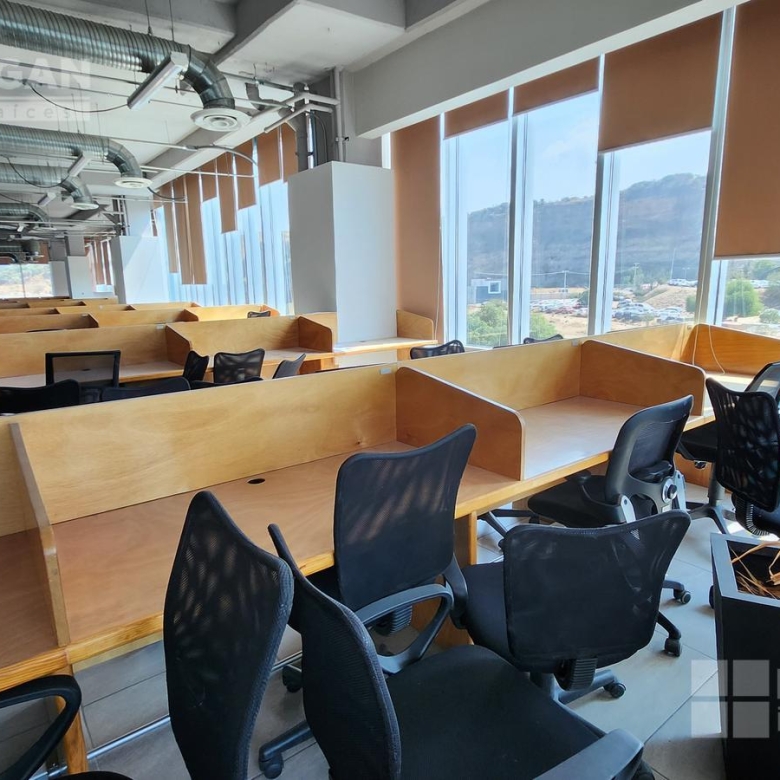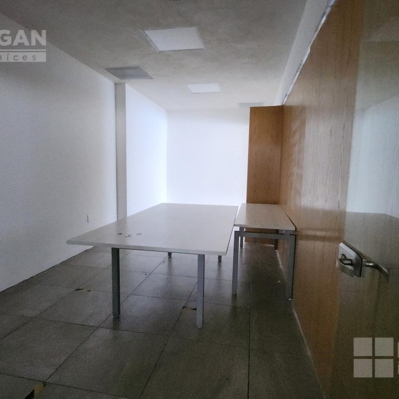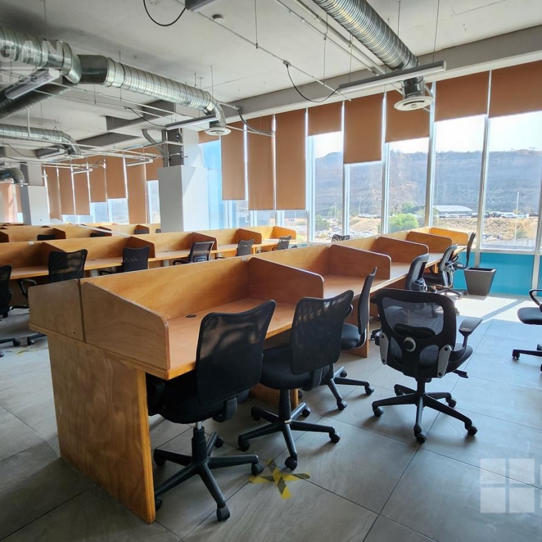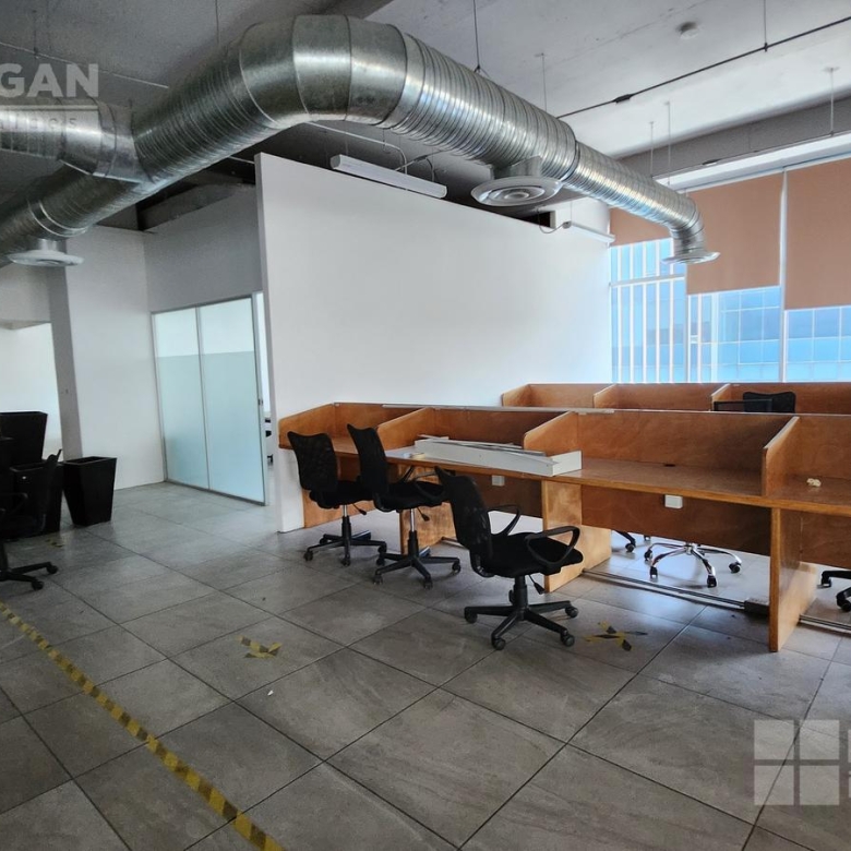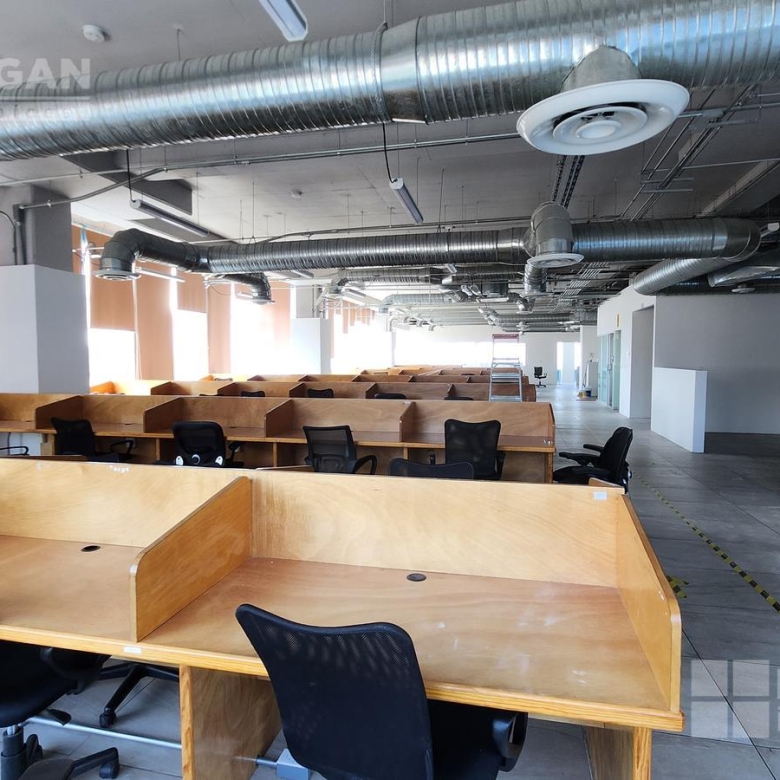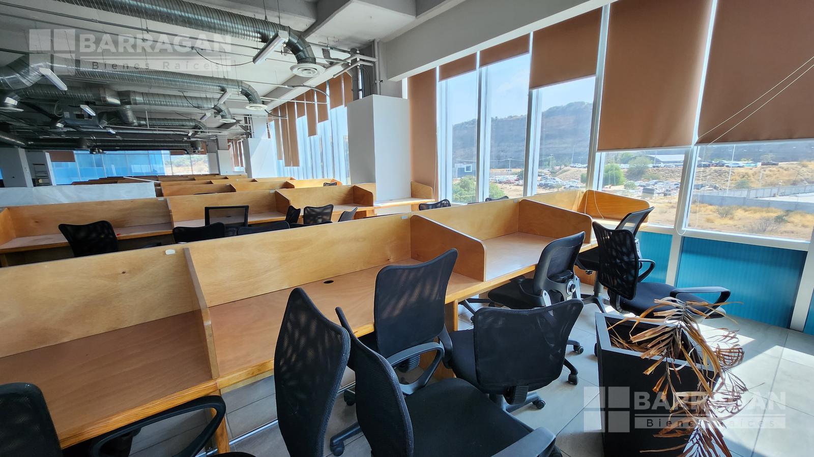 Esta oficina tiene zona de recepción, cinco privados, módulos con cubículos para 108 personas, área de lockers, cuarto para servidor, baños hombres y mujeres, sala de juntas que se puede dividir en tres.