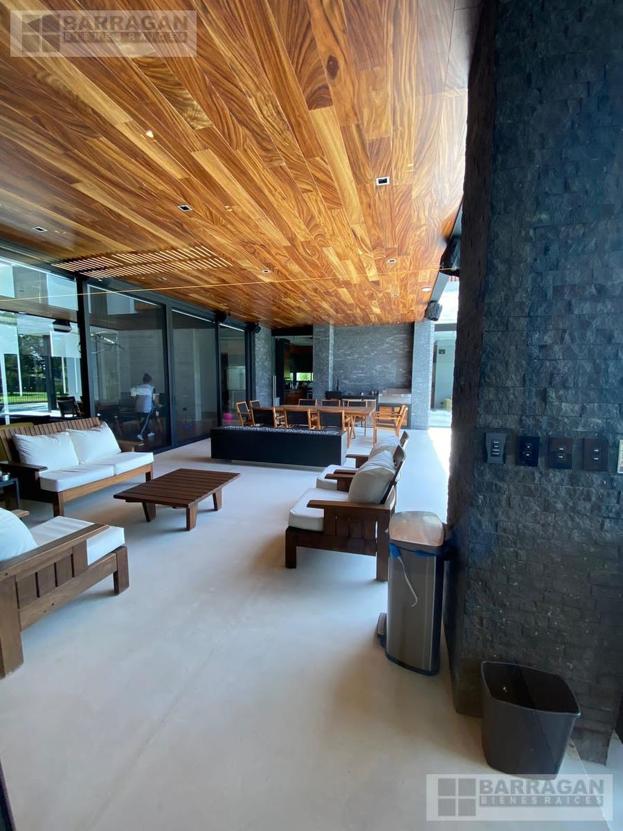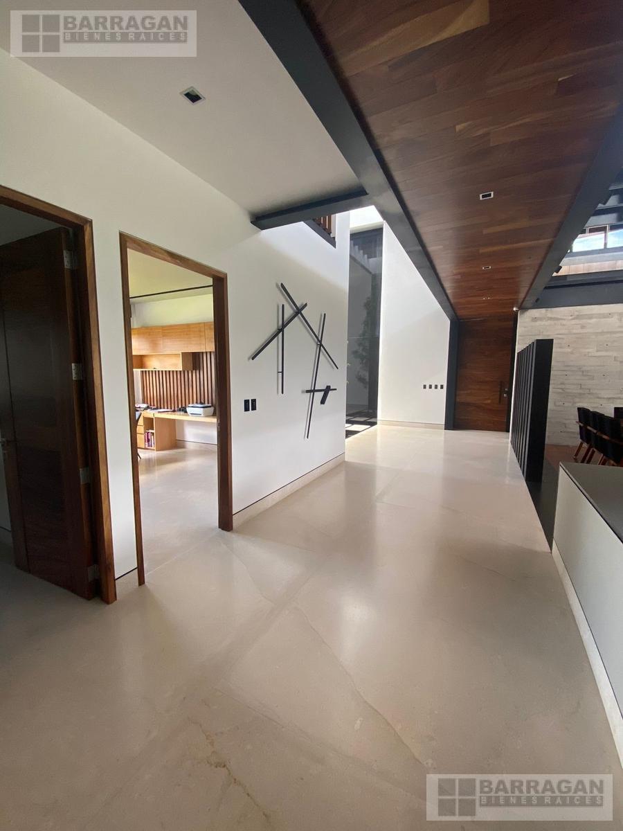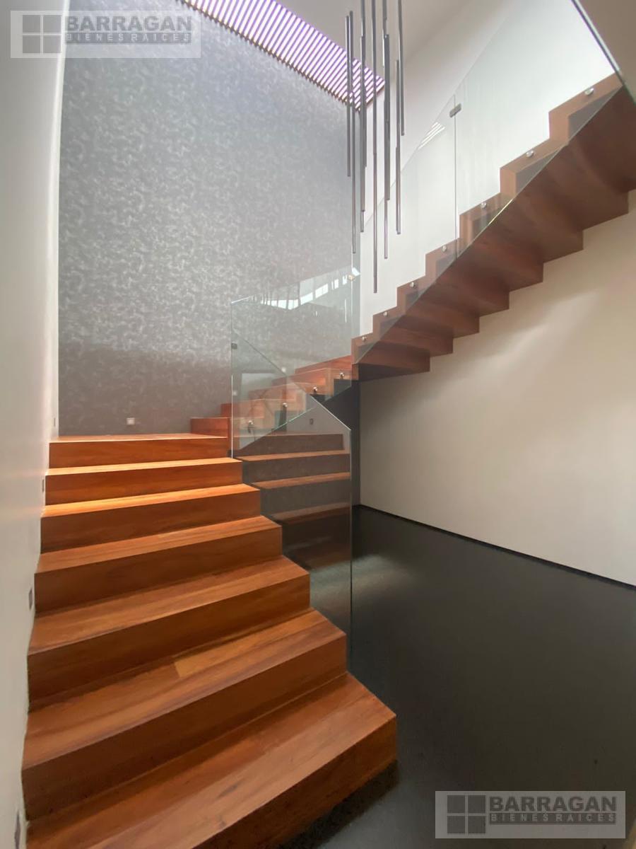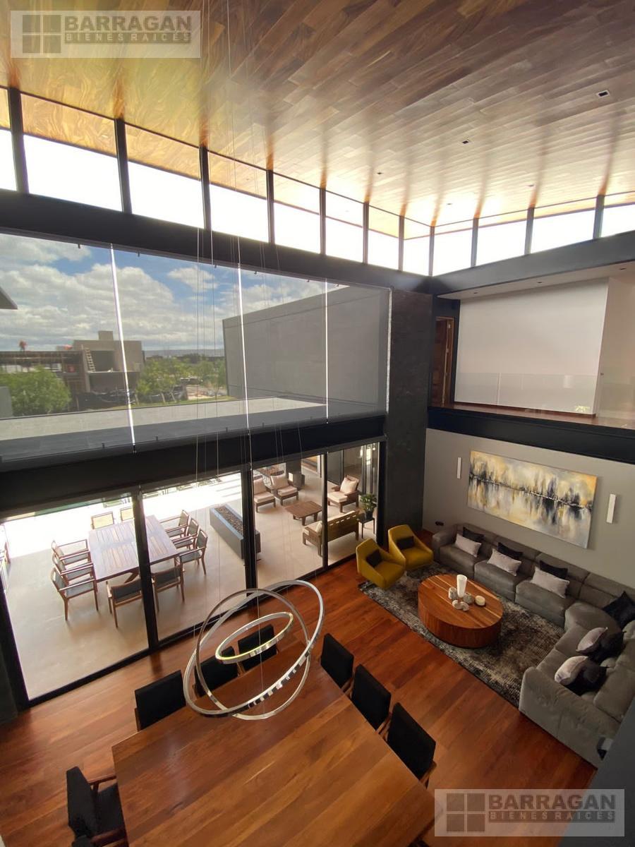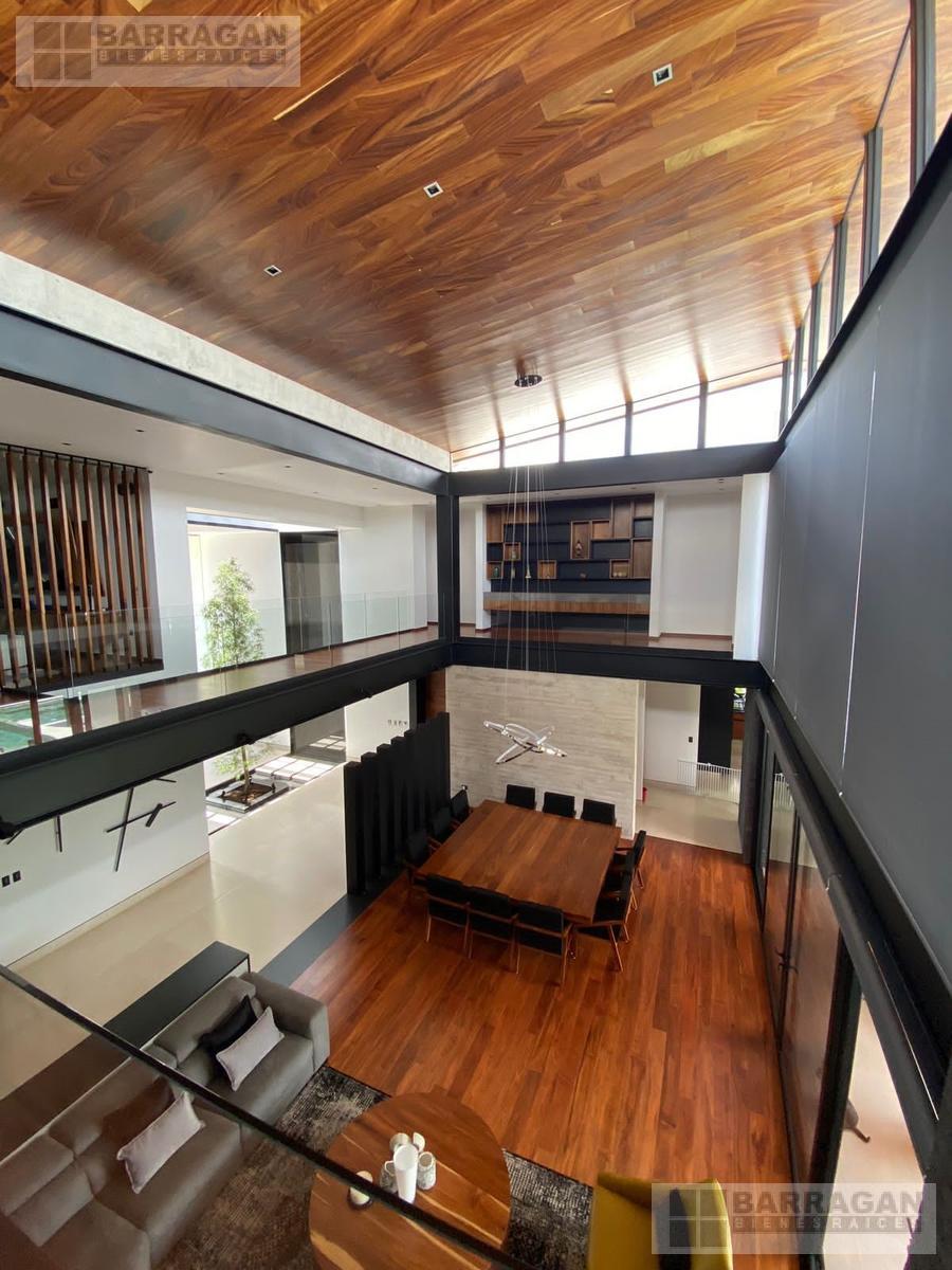 Te recibe una doble altura con cascadas laterales y espejo de agua, sala comedor a doble altura con plafón de madera, cocina equipada profesionalmente, family room, despensa, terraza con asador y bar, alberca con cascada, sala de juegos, gym, estudio, recámara con vestidor y baño, 1/2 baño de visitas, amplio estacionamiento y área de servicio.