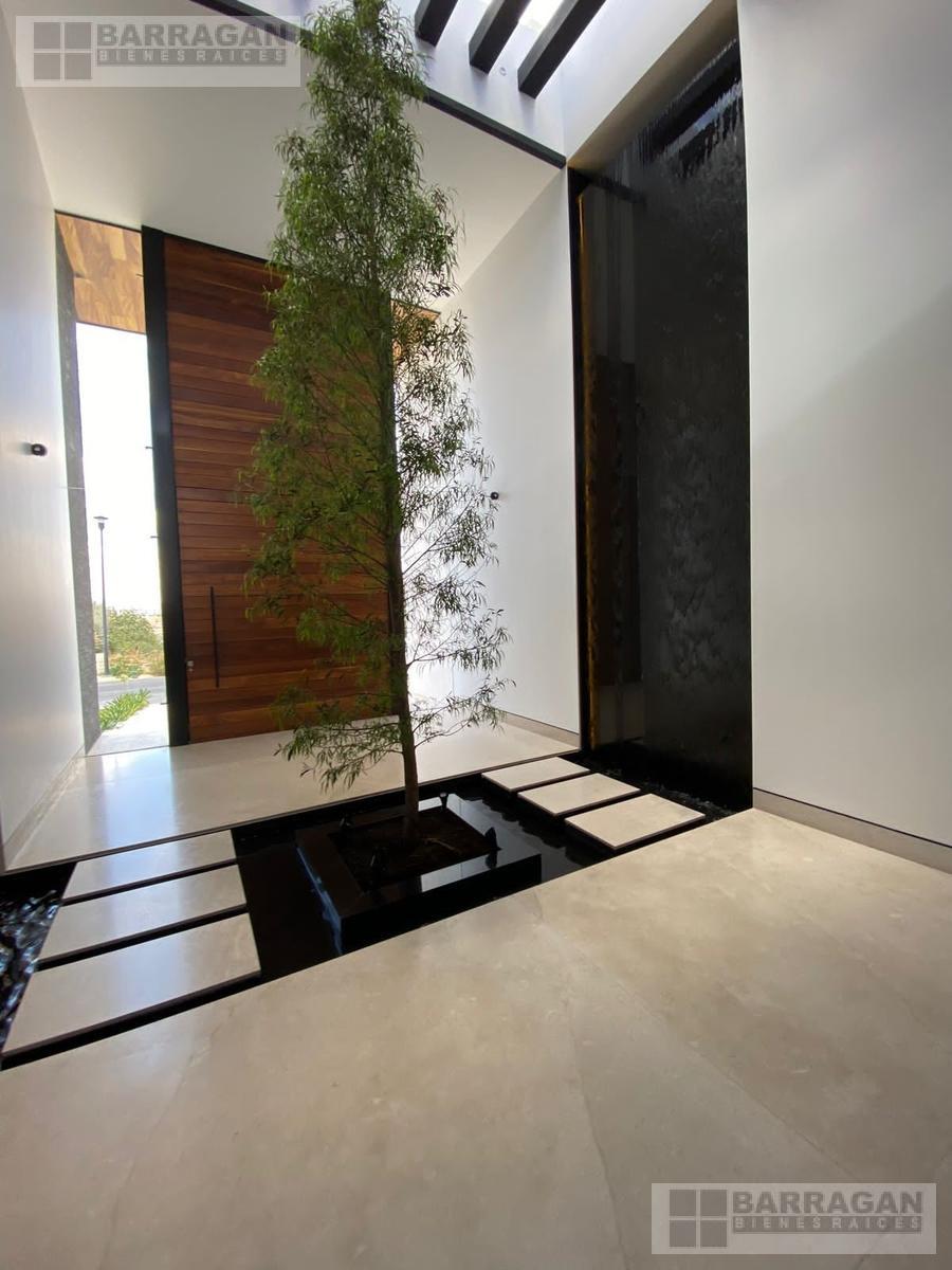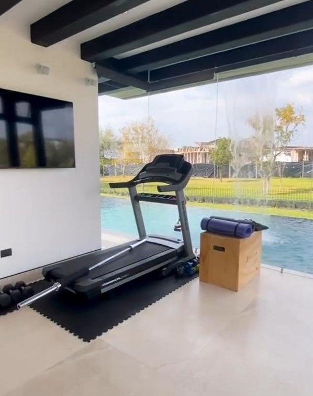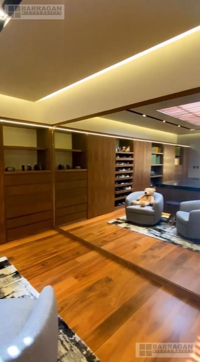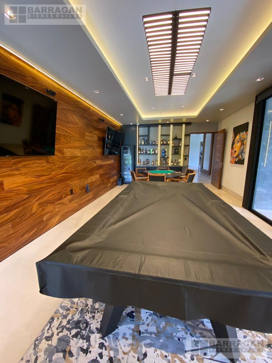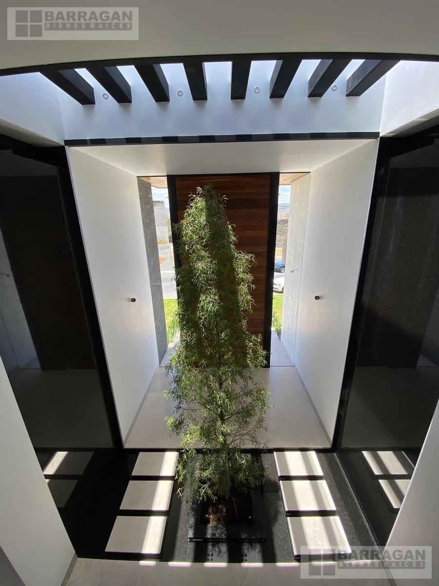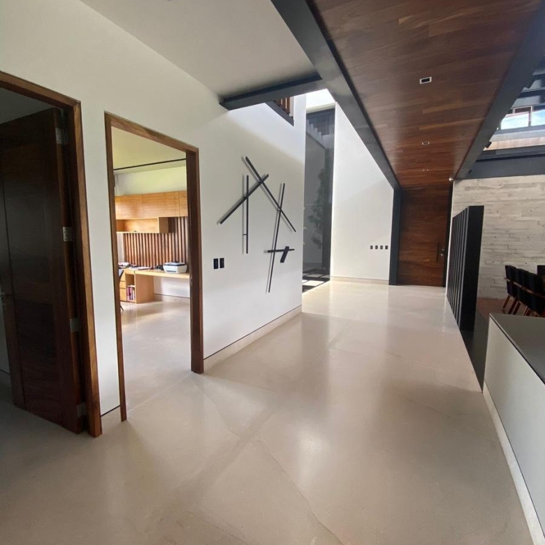 Te recibe una doble altura con cascadas laterales y espejo de agua, sala comedor a doble altura con plafón de madera, cocina equipada profesionalmente, family room, despensa, terraza con asador y bar, alberca con cascada, sala de juegos, gym, estudio, recámara con vestidor y baño, 1/2 baño de visitas, amplio estacionamiento y área de servicio.