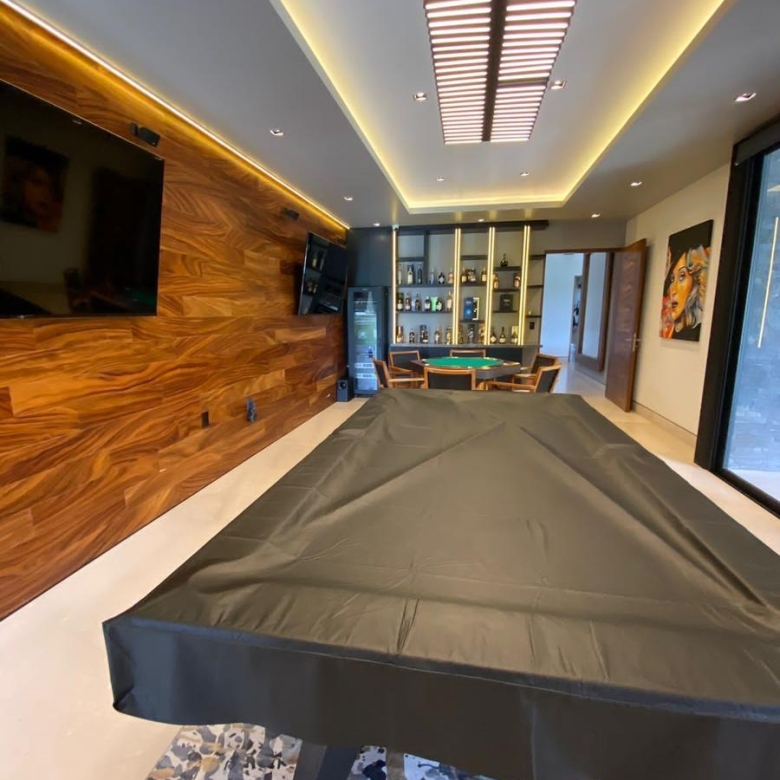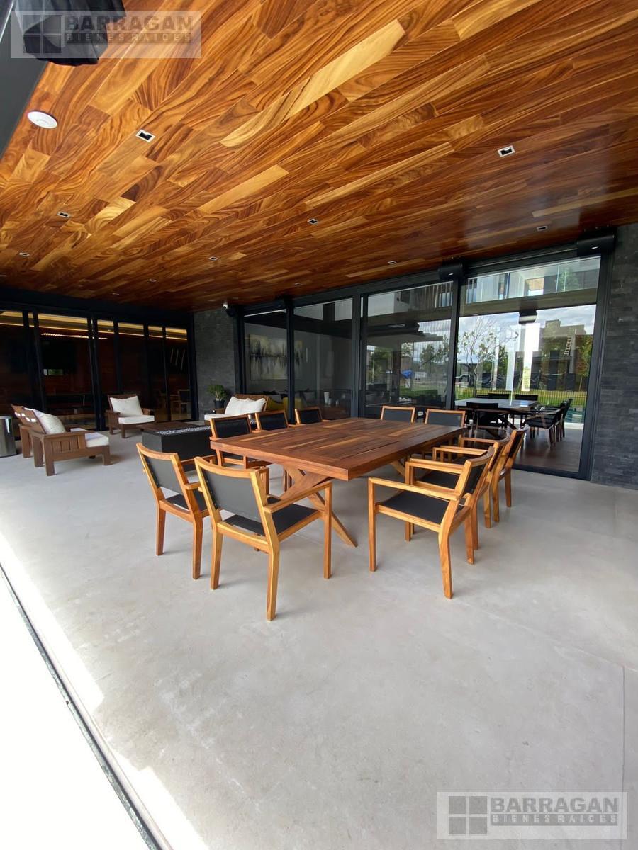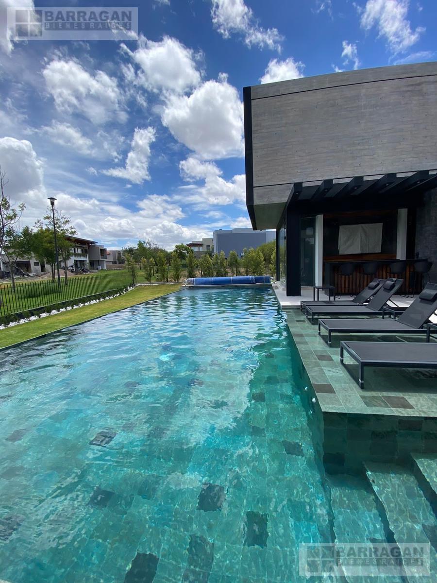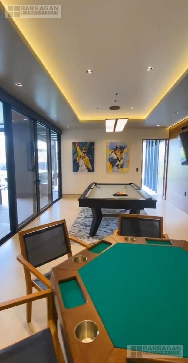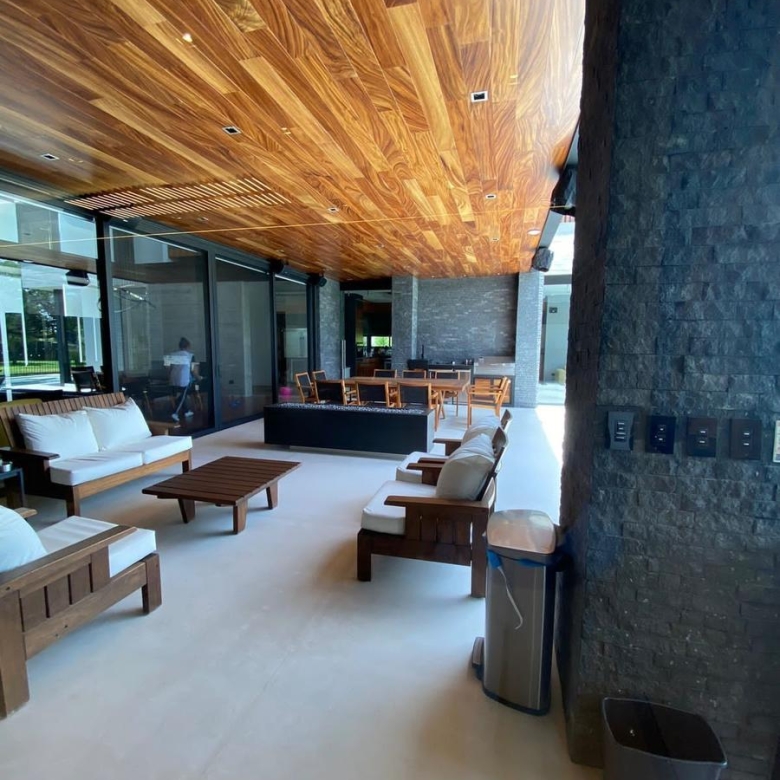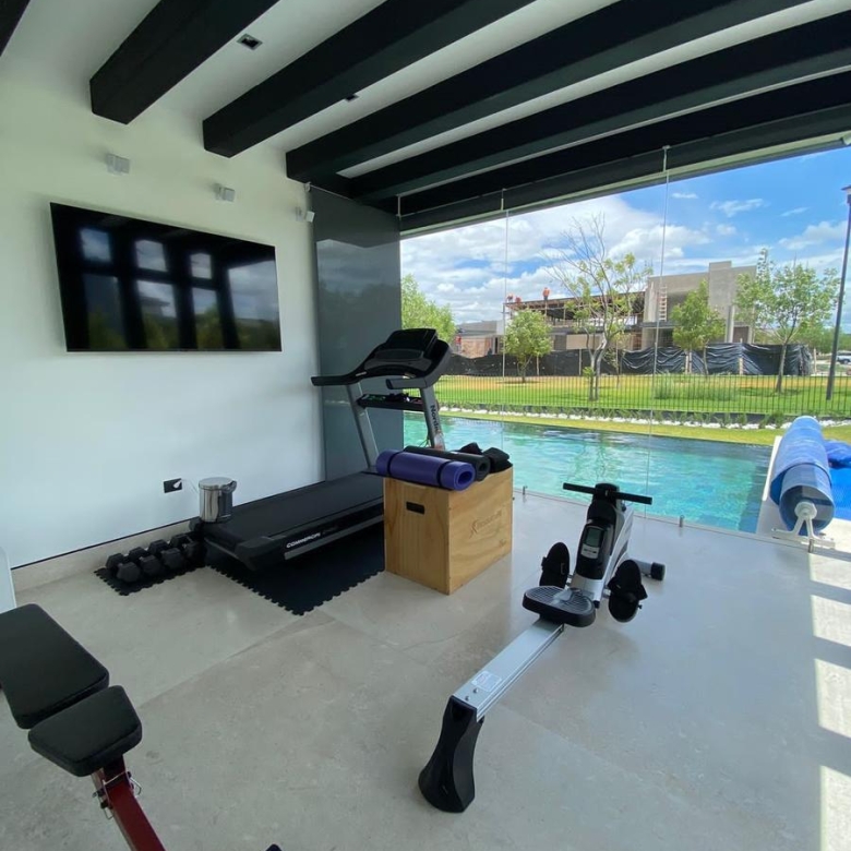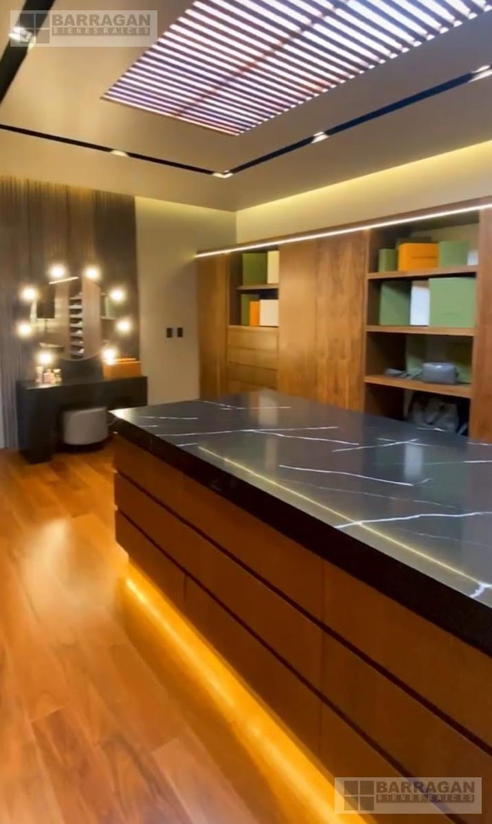 Te recibe una doble altura con cascadas laterales y espejo de agua, sala comedor a doble altura con plafón de madera, cocina equipada profesionalmente, family room, despensa, terraza con asador y bar, alberca con cascada, sala de juegos, gym, estudio, recámara con vestidor y baño, 1/2 baño de visitas, amplio estacionamiento y área de servicio.