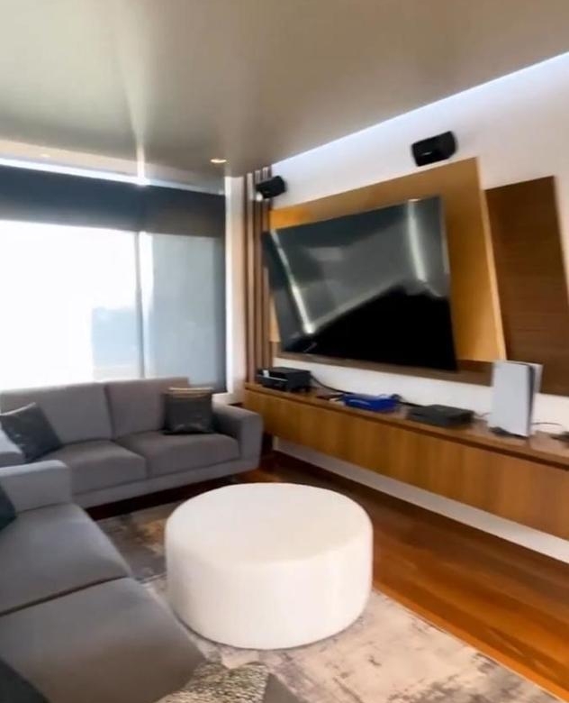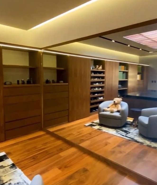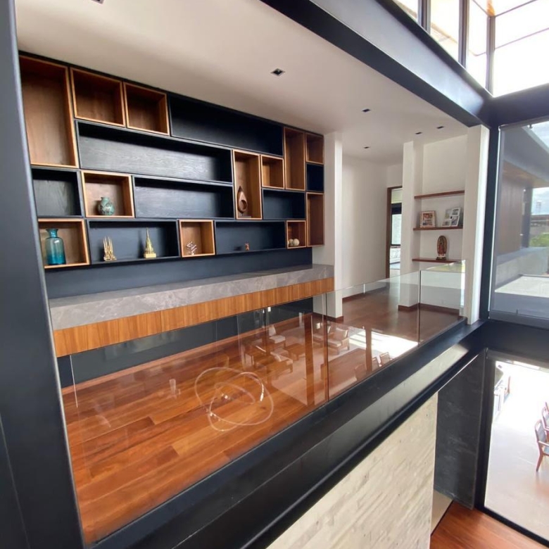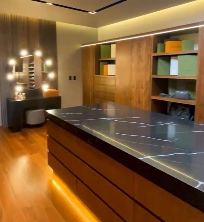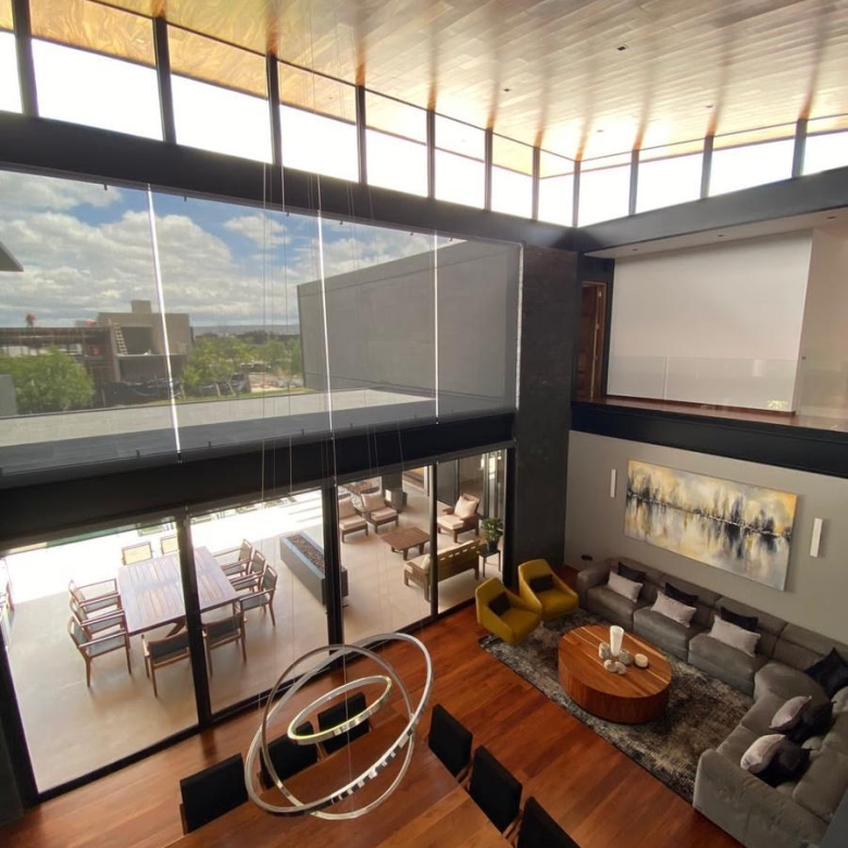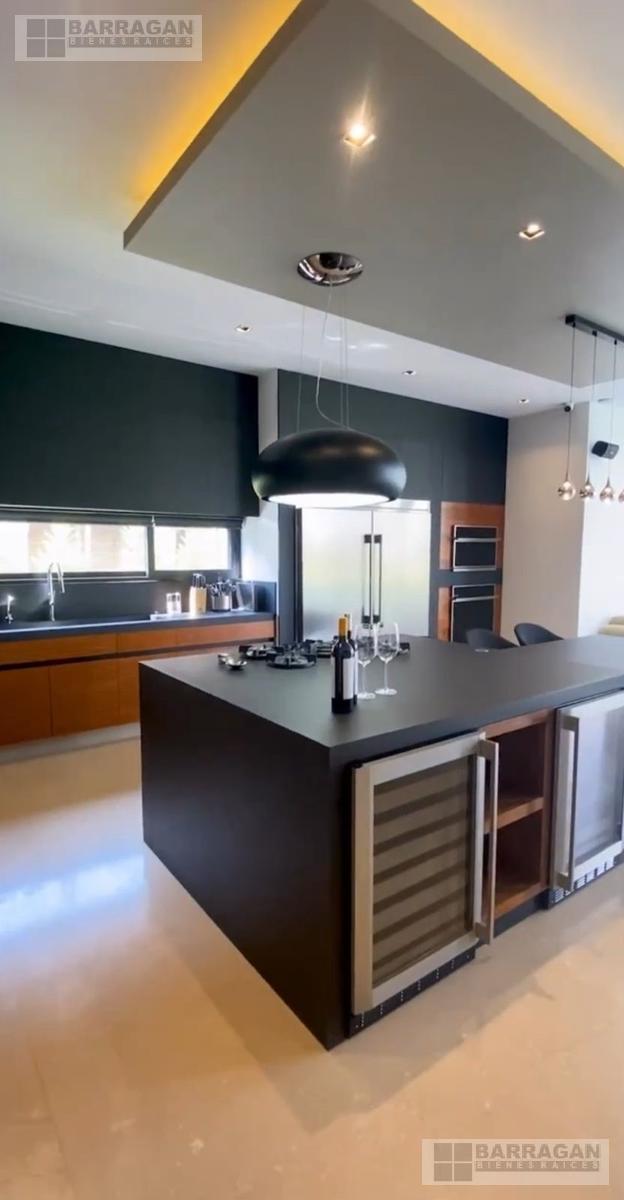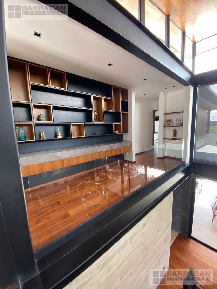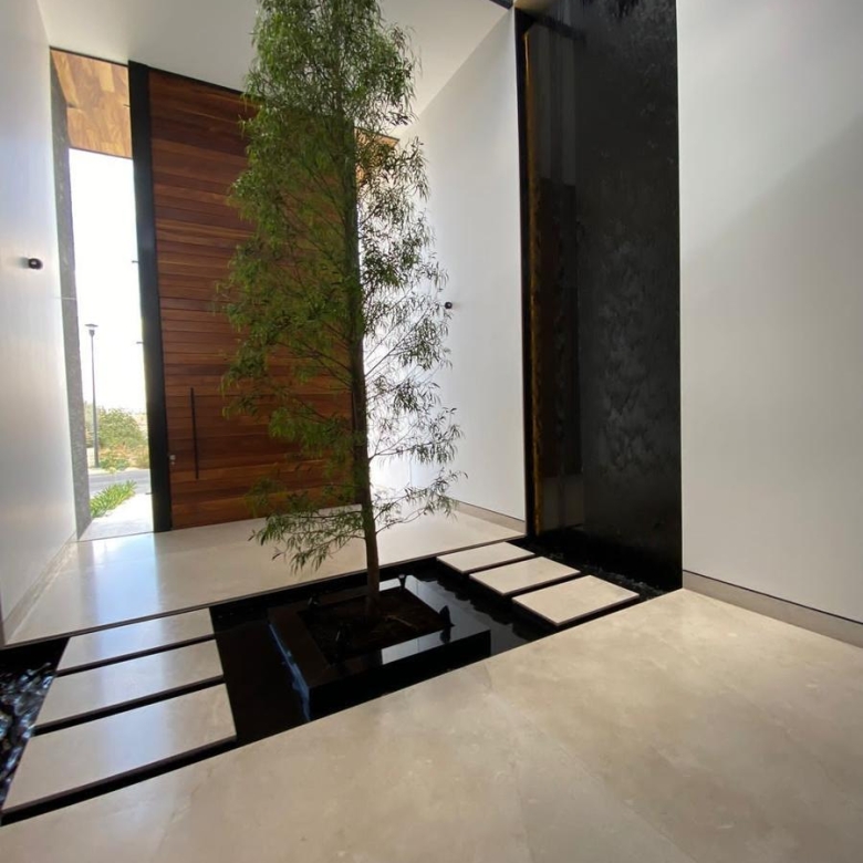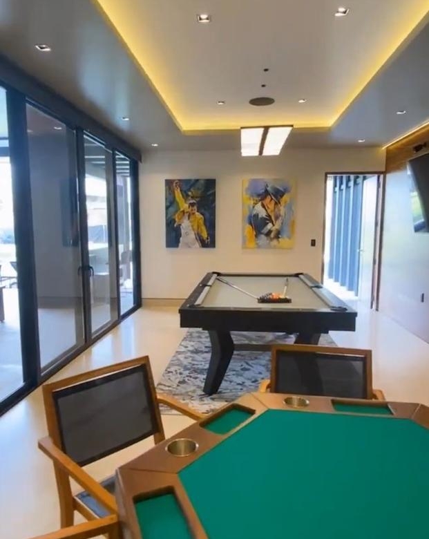 Te recibe una doble altura con cascadas laterales y espejo de agua, sala comedor a doble altura con plafón de madera, cocina equipada profesionalmente, family room, despensa, terraza con asador y bar, alberca con cascada, sala de juegos, gym, estudio, recámara con vestidor y baño, 1/2 baño de visitas, amplio estacionamiento y área de servicio.