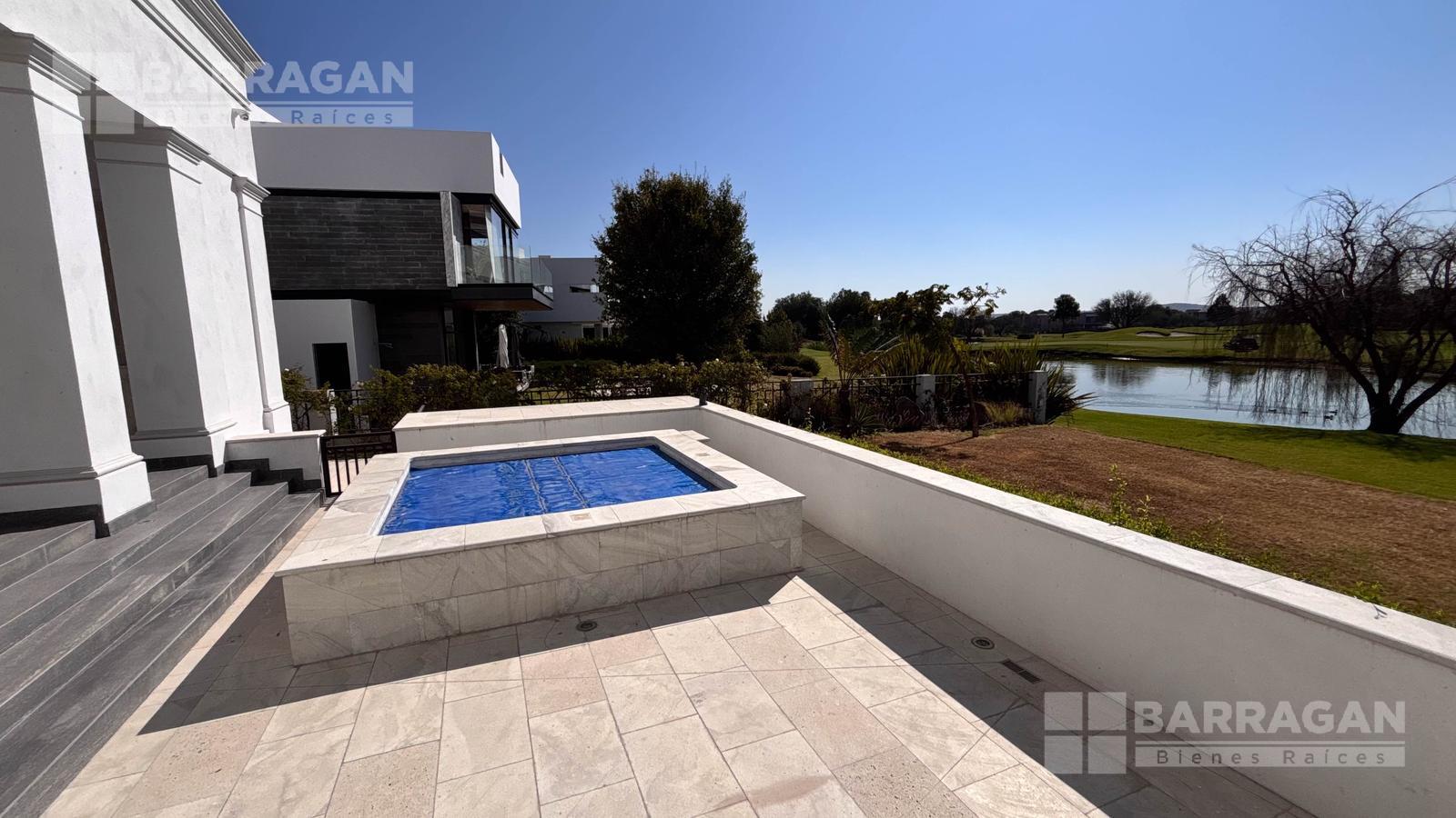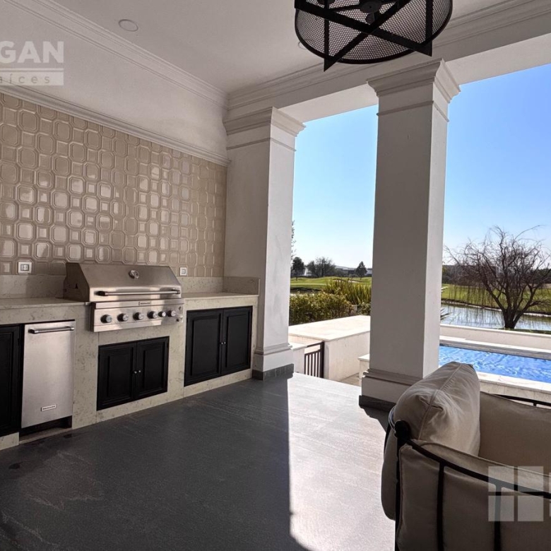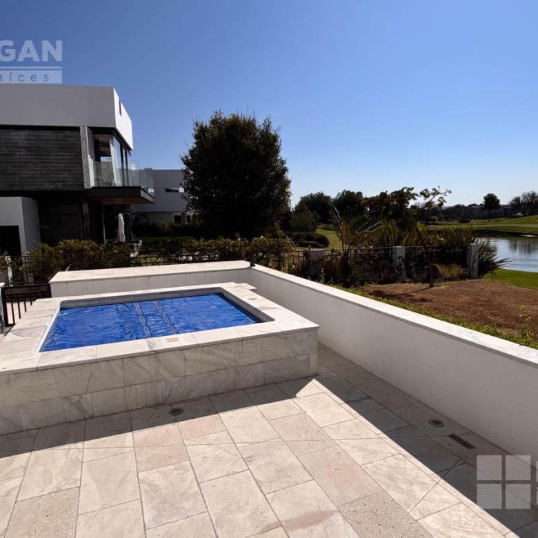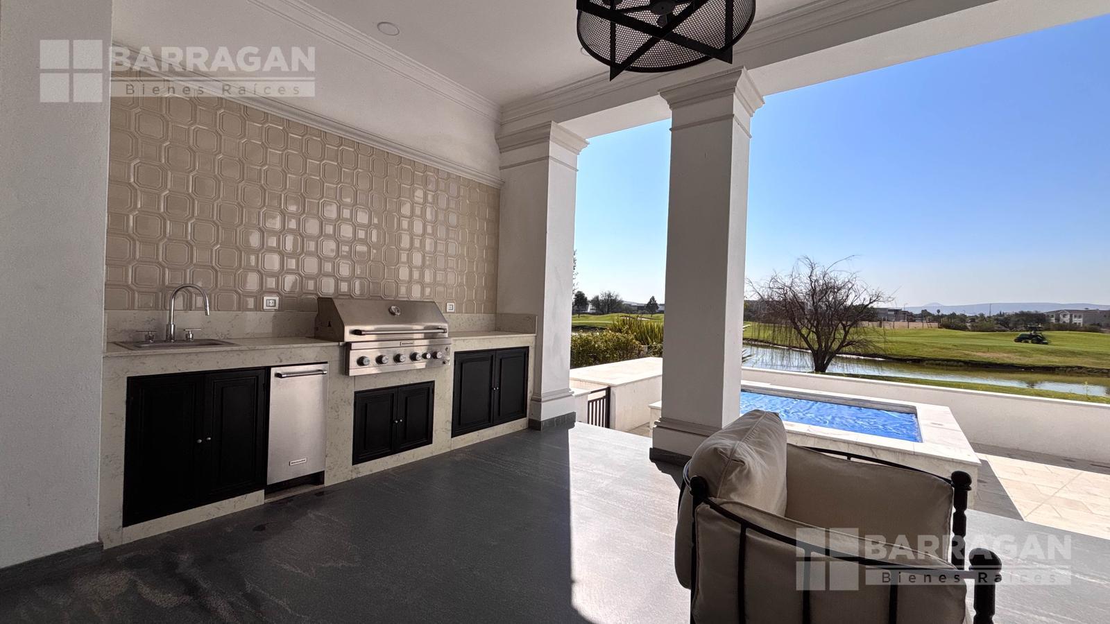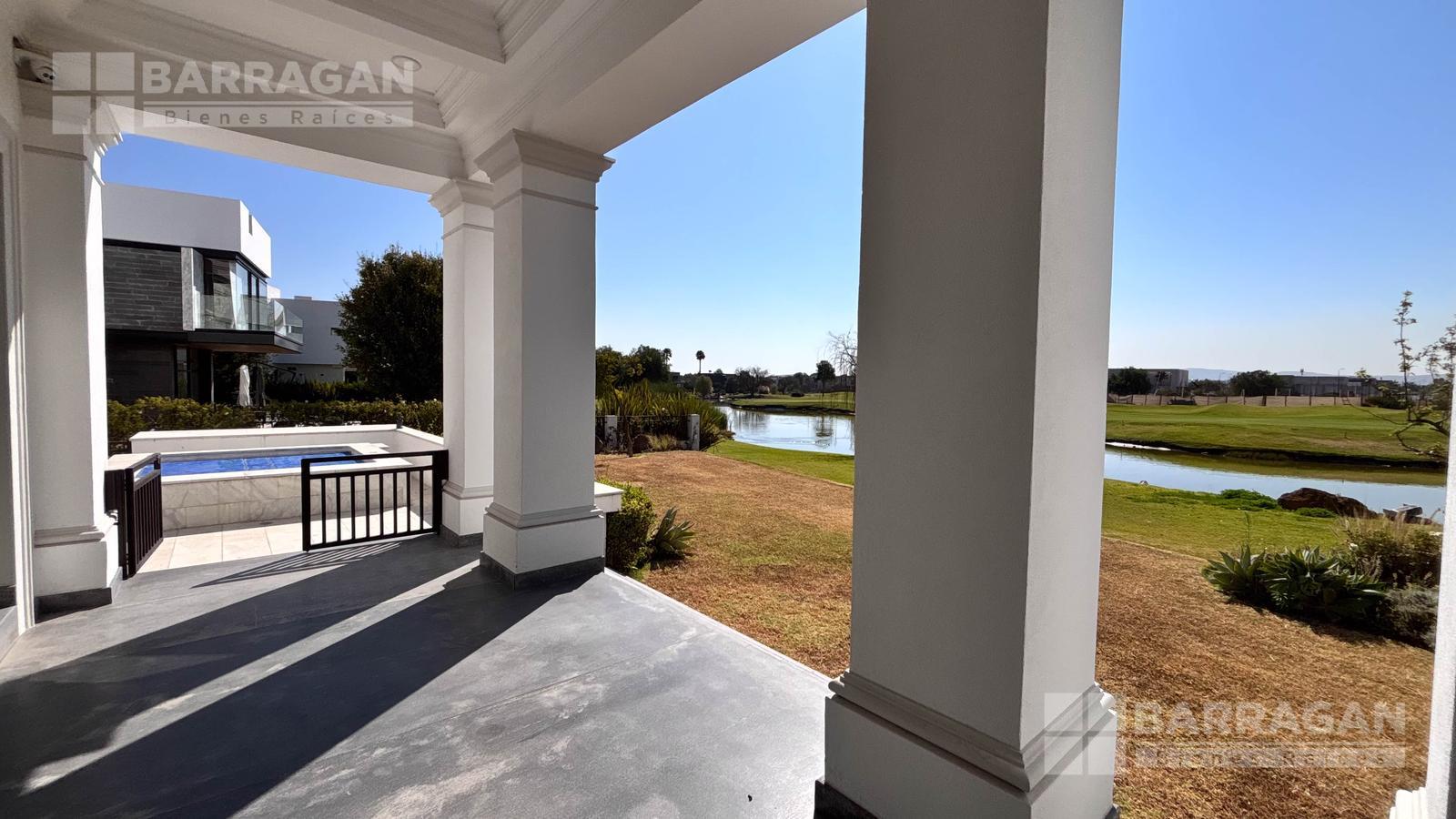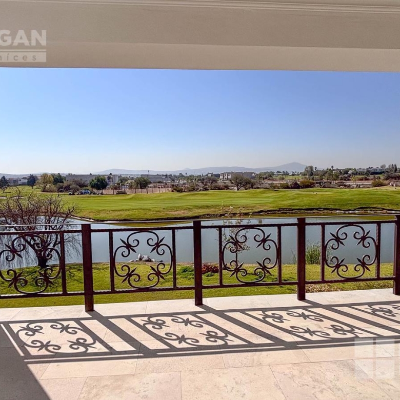 La planta alta tiene cuatro recámaras con baño completo y terraza privada con vista al lago y campo de golf.