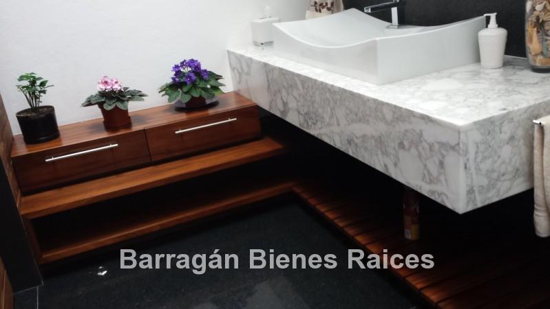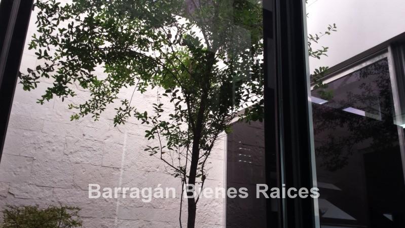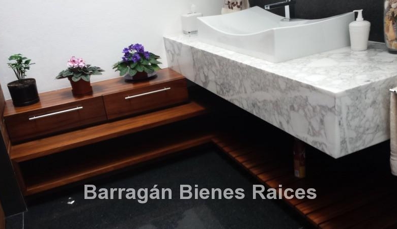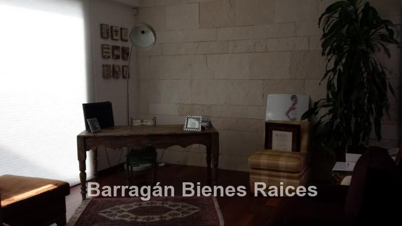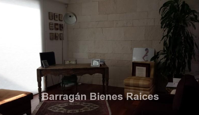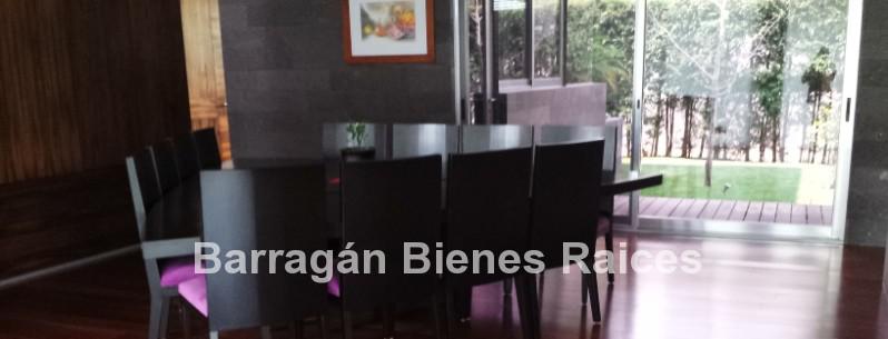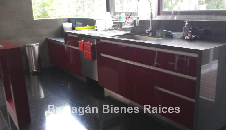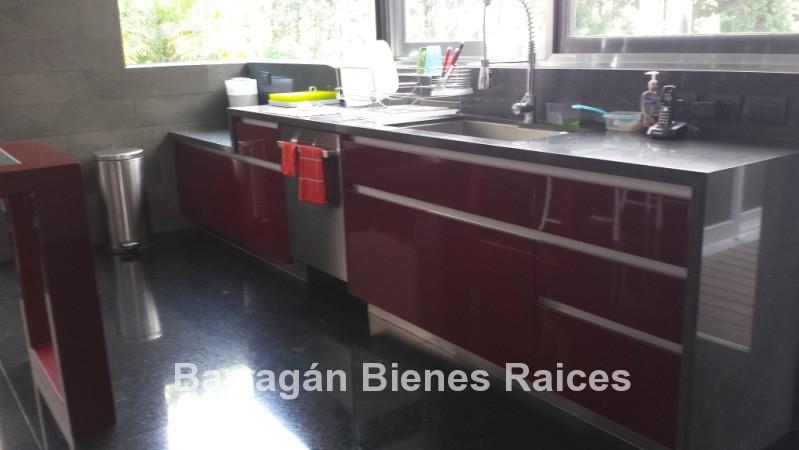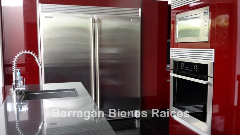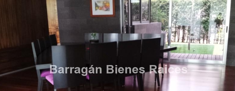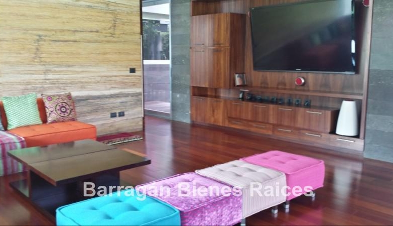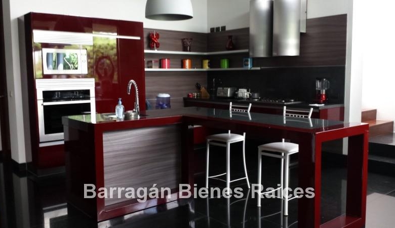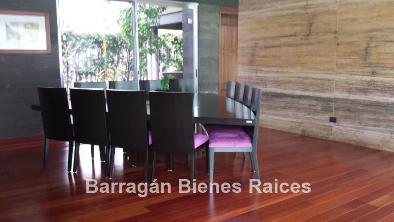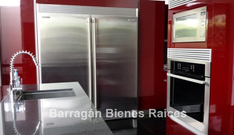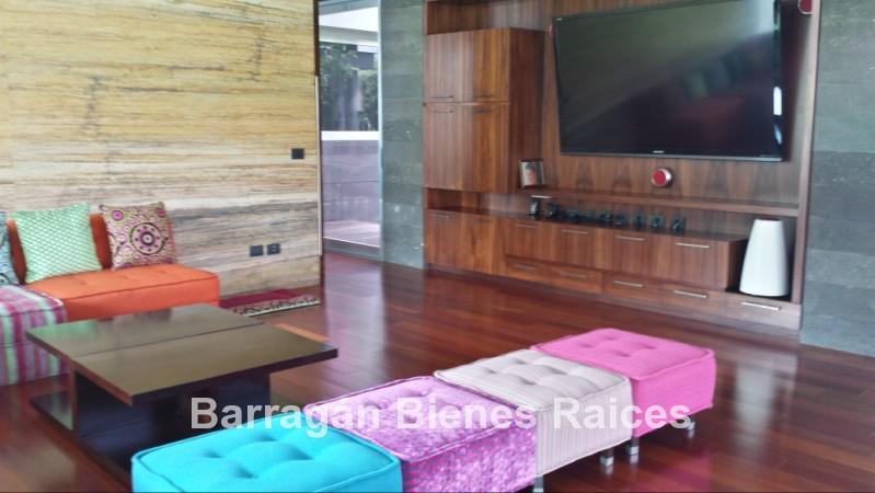 En planta baja cuenta con un recibidor a doble altura, estudio, sala, comedor con acceso a la terraza y jardín, patio interior y cuarto de televisión. La cocina integral totalmente equipada cuenta con equipos de parrilla, campana de acero inoxidable, amplio refrigerador de dos puertas, horno y microondas, isla de granito con tarja, así como con amplios espacios para almacenar. Además la casa cuenta con área de lavado techada, patio para tendido y cuarto de servicio. Cochera techada para tres autos.