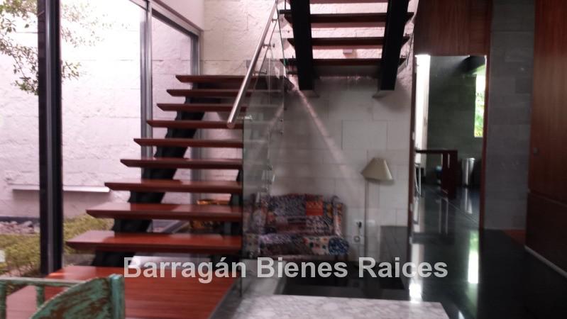 Acceso a planta alta con moderna escalera de madera con barandales de acero cristal templado, cuenta con cuatro recámaras con pisos de madera, cada una con baño completo y vestidor.