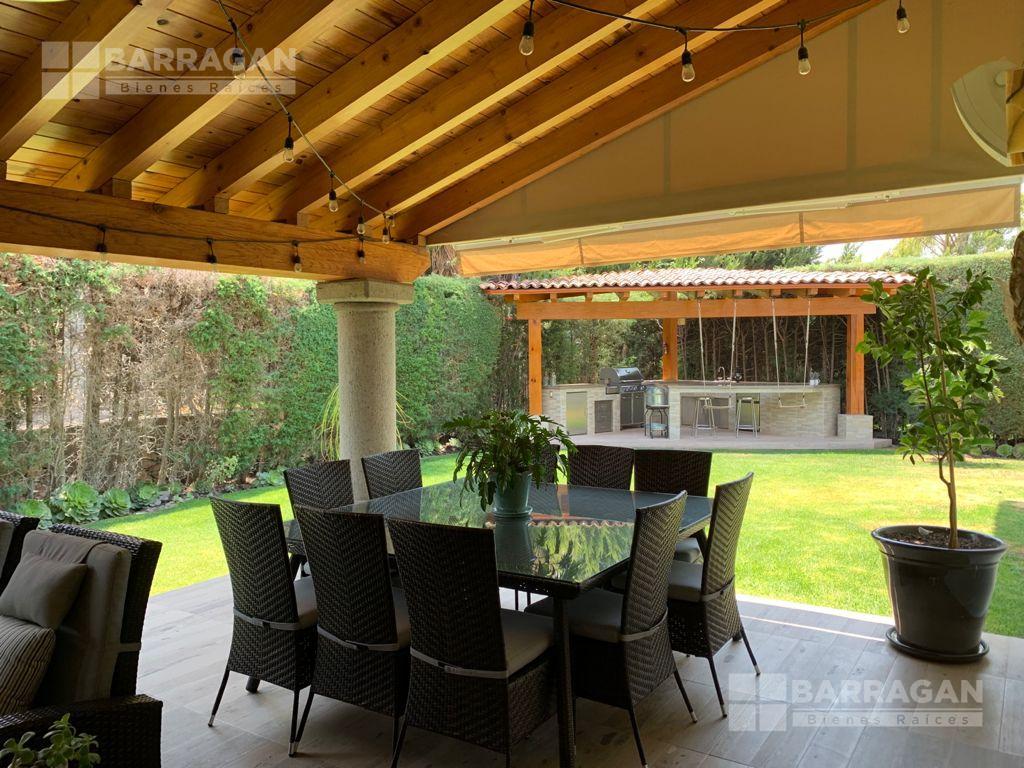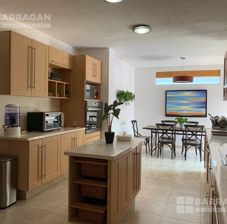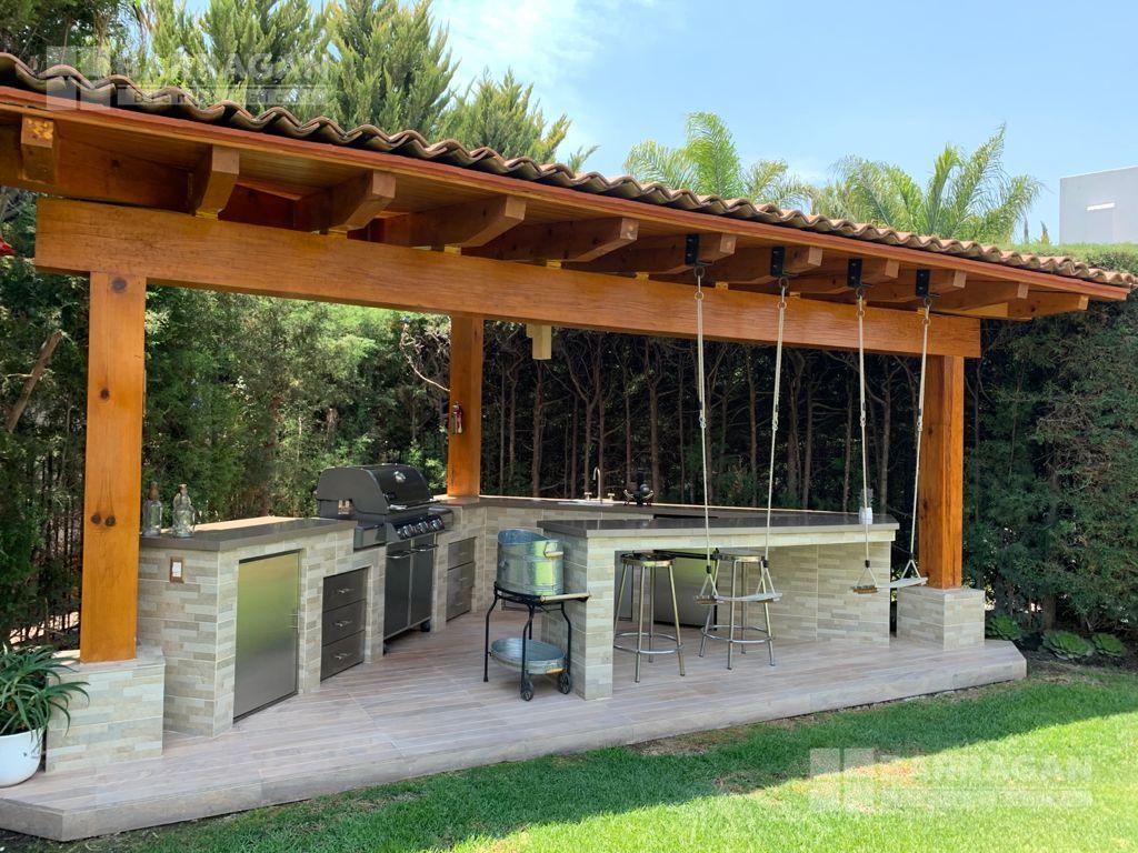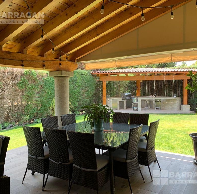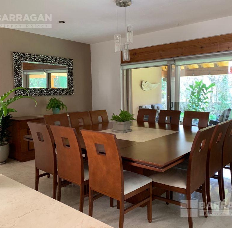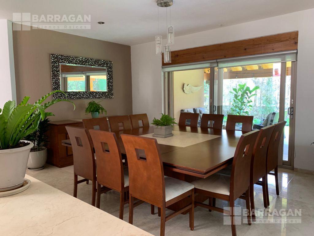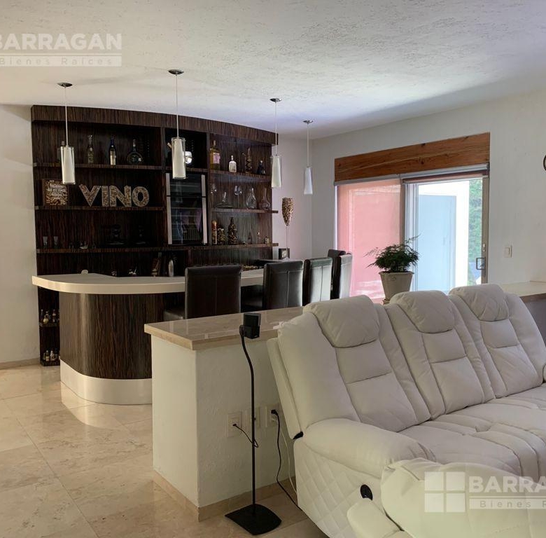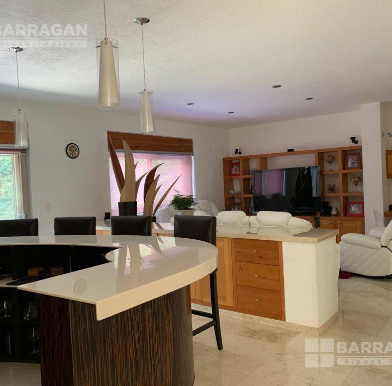 Residencia con excelentes acabados y todos los ambientes sociales y familiares, estancia, sala comedor, bar y family room, cocina equipada, desayunador, terraza, kiosco asador, alberca c/carril de nado y jacuzzi.