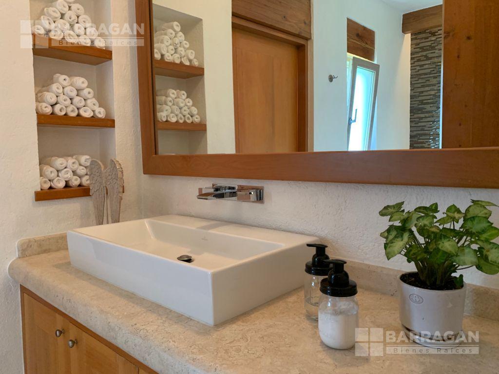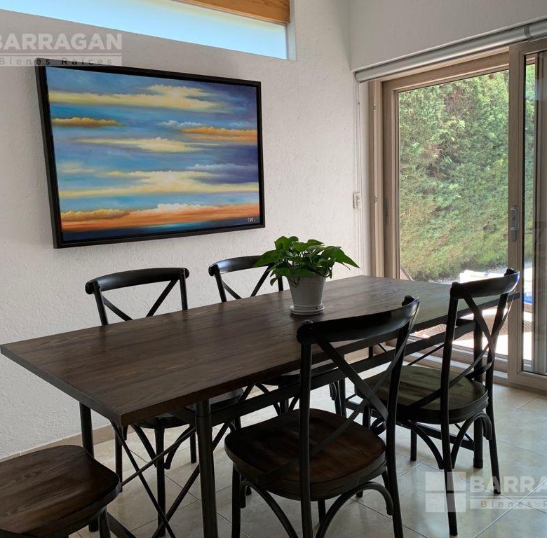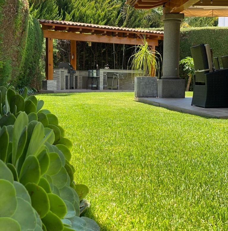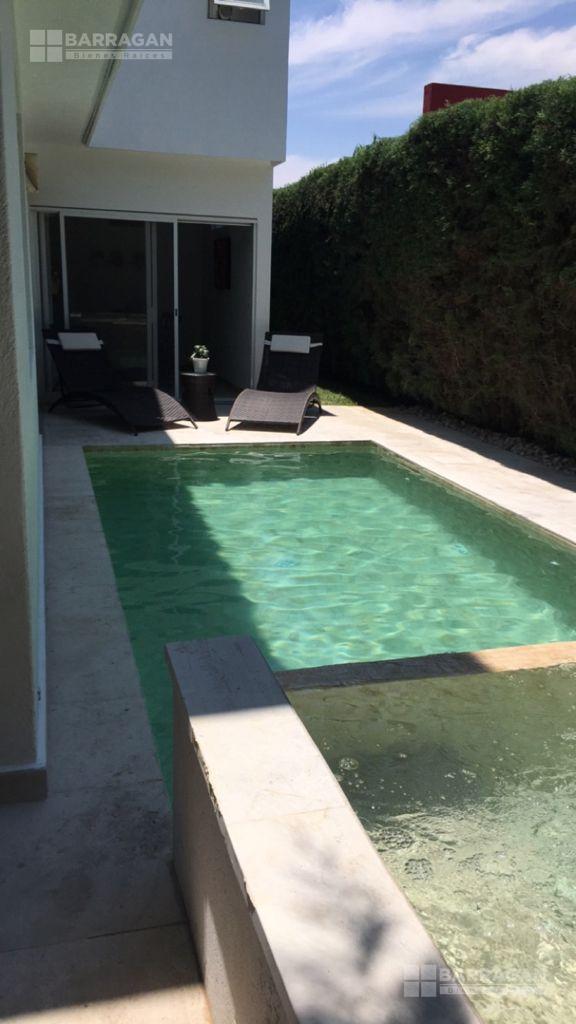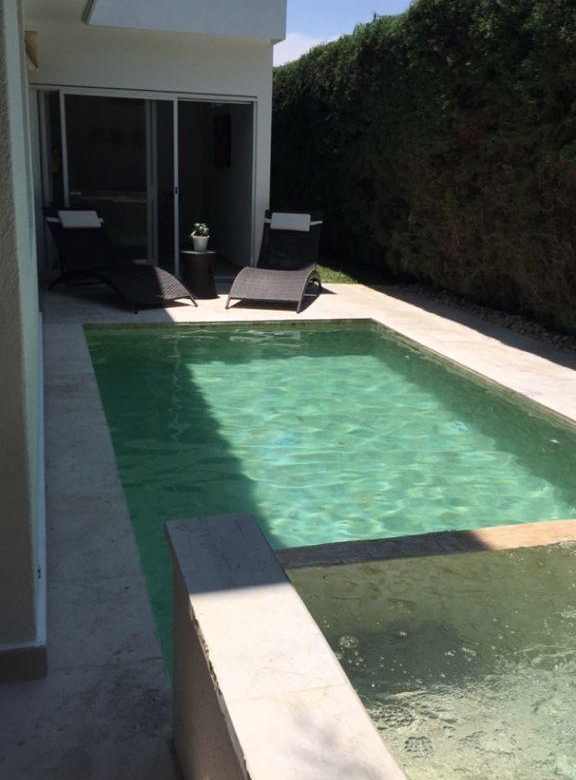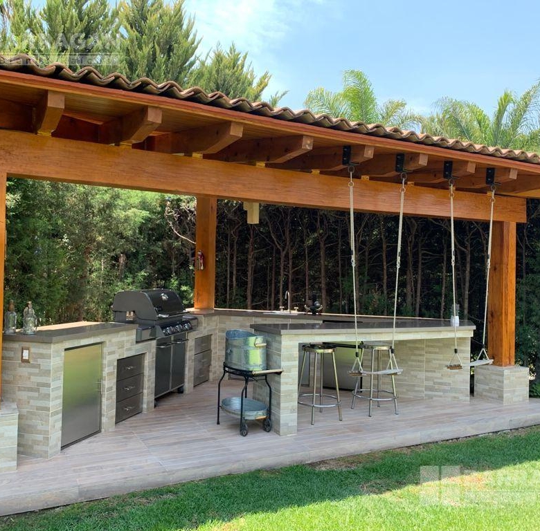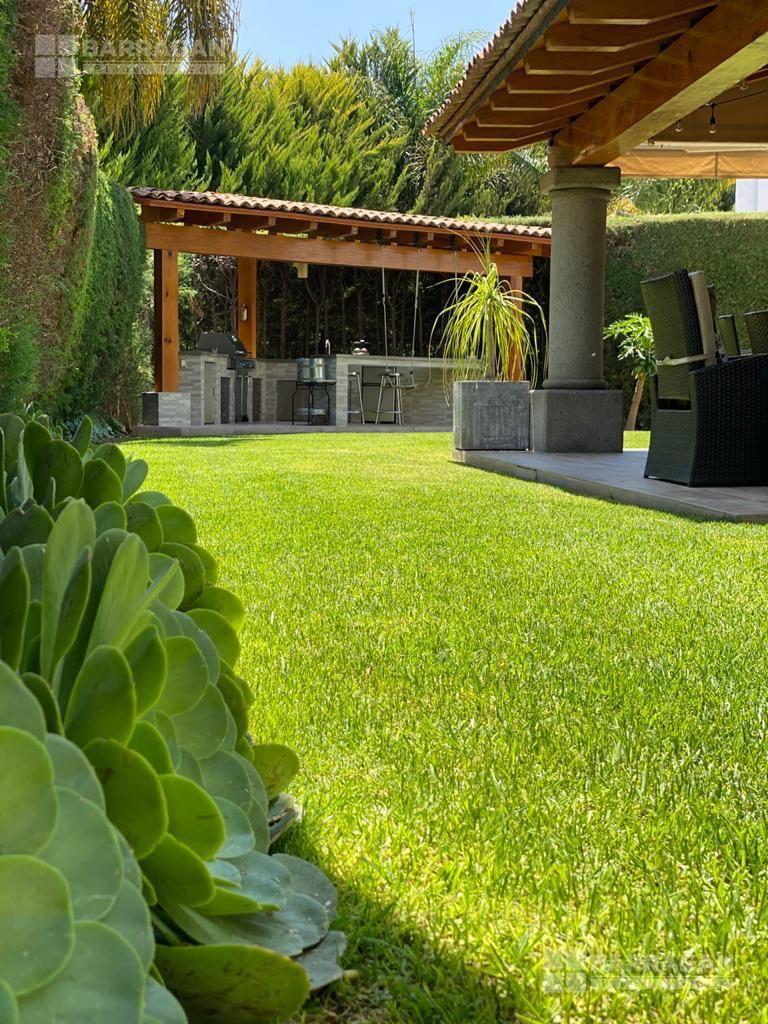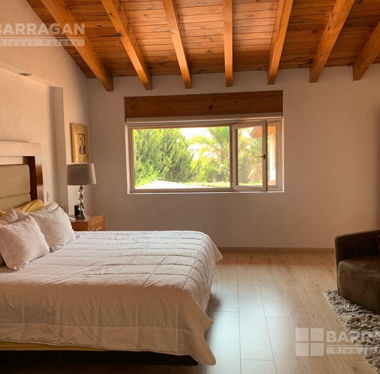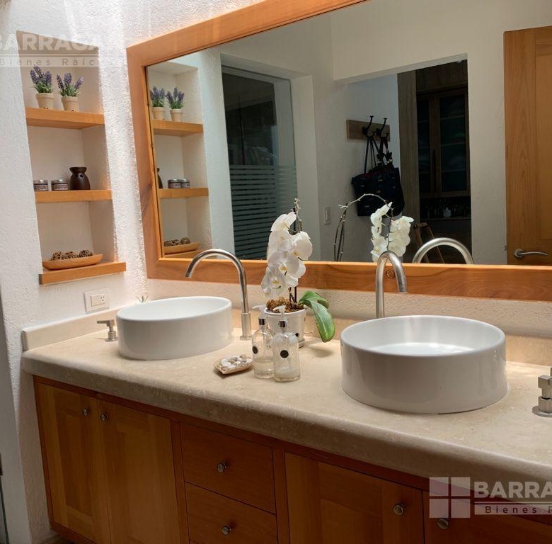 Residencia con excelentes acabados y todos los ambientes sociales y familiares, estancia, sala comedor, bar y family room, cocina equipada, desayunador, terraza, kiosco asador, alberca c/carril de nado y jacuzzi.
