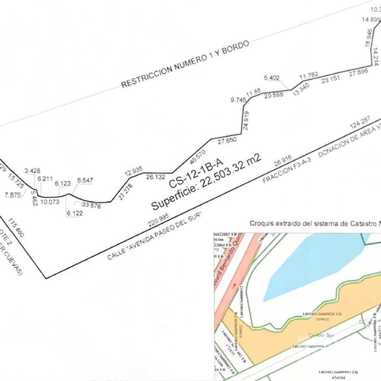 Con una superficie de 22,503.32 metros, el terreno ofrece no solo un acceso principal por la avenida confluente, sino también un acceso secundario a través de una tranquila calle interior, paralela a la avenida. Esta configuración dual garantiza una accesibilidad y conectividad inmejorables, facilitando la entrada y salida de vehículos y peatones de manera eficiente y segura.