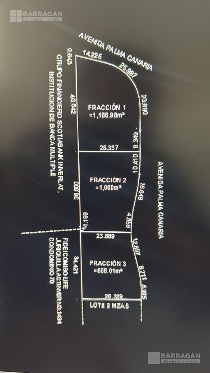 Terreno de 1188.98 m² con excelente ubicación dentro de una zona de alto crecimiento en Juriquilla, Querétaro. Su forma rectangular y amplio frente garantizan máxima exposición y fácil aprovechamiento del espacio.