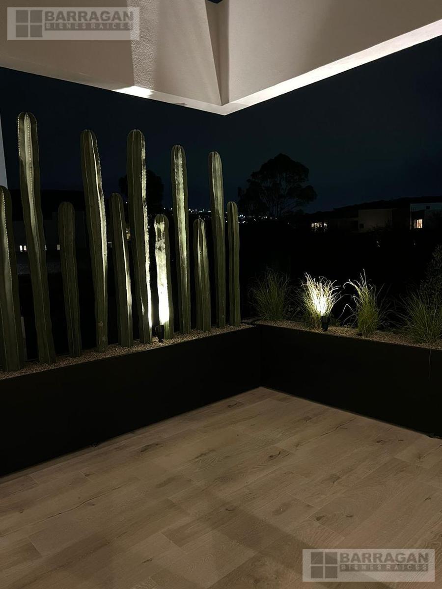 Está casa es sorprendente en su diseño meticulosamente pensado y calidad en acabados, se puede claramente percibir el cuidado hasta en el más pequeño detalle para su funcionalidad y habitabilidad. Situada en Altozano en el fraccionamiento de Río, el fraccionamiento más exclusivo de Altozano, ya que es el que cuenta con más áreas verdes. Esta moderna casa, con su ubicación en terreno interior, ofrece tranquilidad y seguridad. Con su orientación al sur y vigilancia las 24 horas, garantiza una vida serena y protegida. Un estacionamiento techado para cuatro autos, un pasillo de paisaje exuberante, arboles y plantas, invita a descubrir la belleza que reside dentro. En el interior, la versatilidad se hace presente, en planta baja; un baño de visitas, un espacio que puede transformarse en estudio o cuarta recámara, ya que cuenta con un baño completo y vestidor con vista a un patio interior. Un clóset de visitas, una bodega. La cocina abierta, totalmente equipada y automatizada con los mejores equipos y alta calidad en materiales que conecta a la luminosa estancia y comedor de doble altura, crea un ambiente acogedor perfecto para la vida familiar y el entretenimiento. La terraza techada, con su jacuzzi y vistas al área verde circundante, ofrece un refugio de paz y serenidad. En la planta alta, un encantador family room, un clóset de blancos y tres recámaras, cada una con su propio baño y vestidor. La recámara principal conecta a una terraza techada con vistas espectaculares. Con acabados de calidad y un paisajismo cuidadosamente diseñado, y un diseño funcional, esta casa combina a la perfección estilo y comodidad para una vida moderna.
