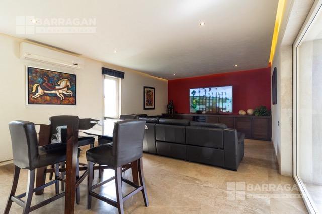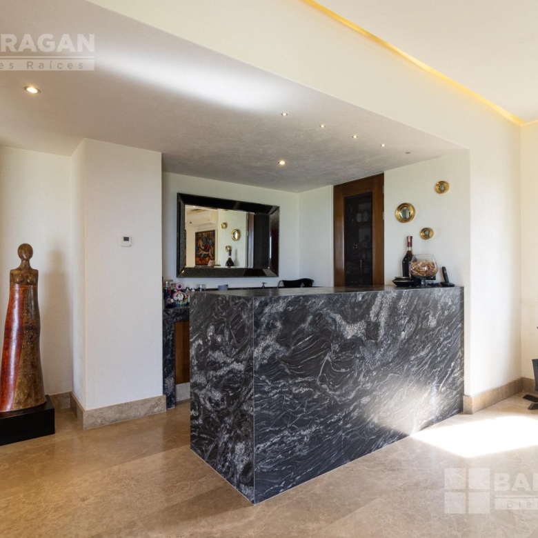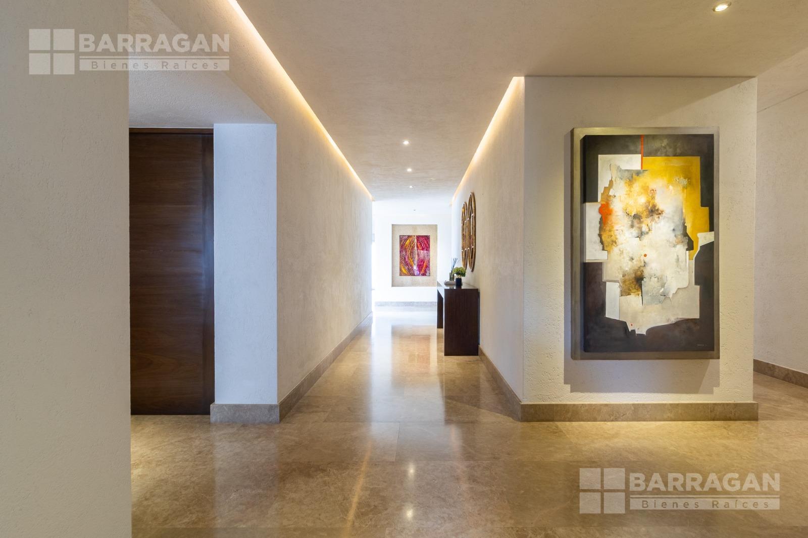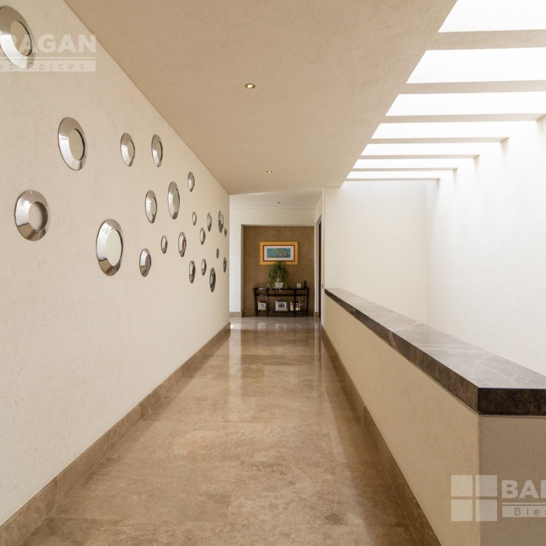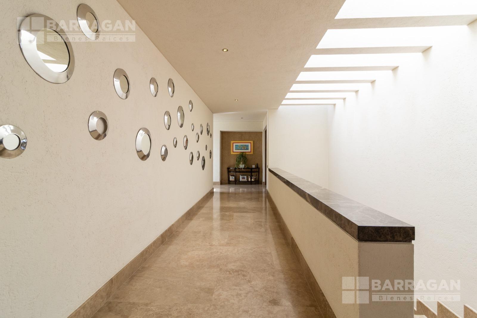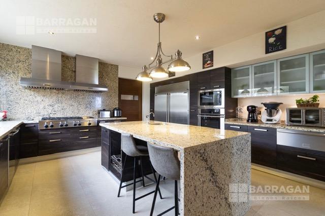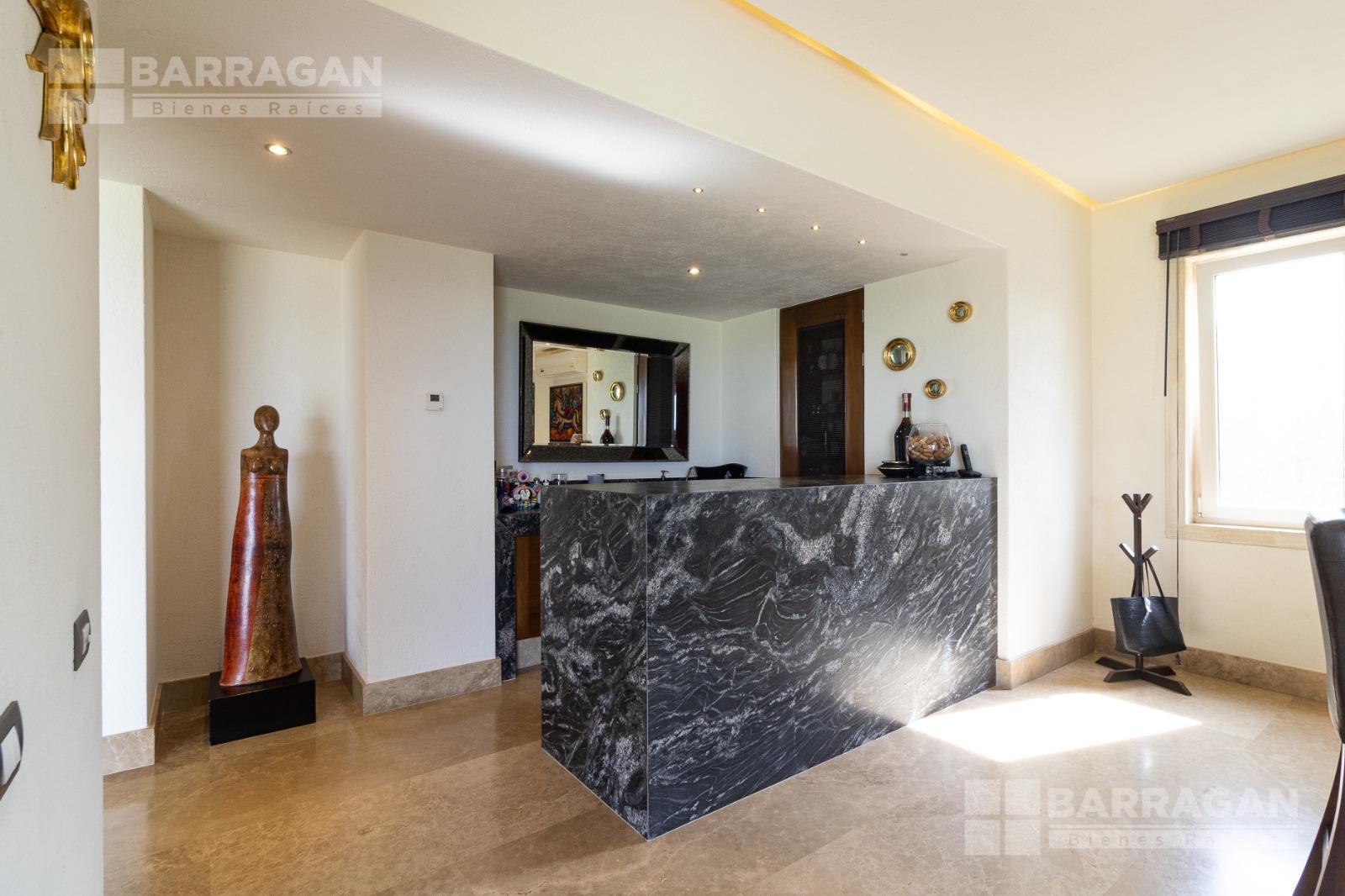 En planta baja, la propiedad cuenta con una recámara completa ideal para visitas o para adultos mayores, además de un estudio privado que brinda el espacio perfecto para trabajar desde casa. La elegante sala–comedor con chimenea de gas crea un ambiente cálido y acogedor, complementado por un family room con barra bar ideal para reuniones sociales. Dispone también de antecomedor y una cocina equipada con electrodomésticos de alta gama, diseñada para satisfacer los gustos más exigentes. La terraza social se integra armoniosamente con el gran jardín, desde donde se disfruta una hermosa y privilegiada vista al campo de golf.